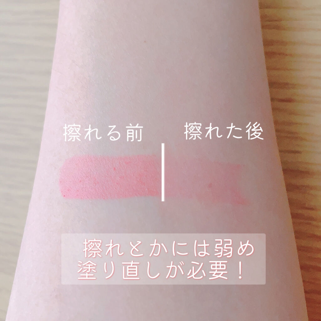 マットタイプなのにカサつかずサラッとした仕上がりになる!! 生チョコレートのような甘いお菓子のような香り🍫がしました ふんわりと発色してマシュマロのような仕上がり! ロムアンドのジューシーティントよりは取れにくい気がします!! 秋〜冬メイクにピッタリです🍁