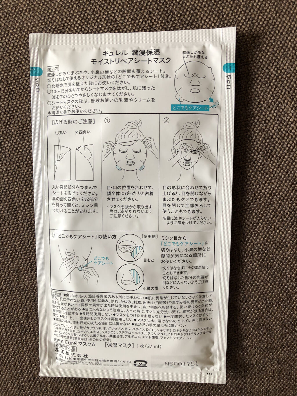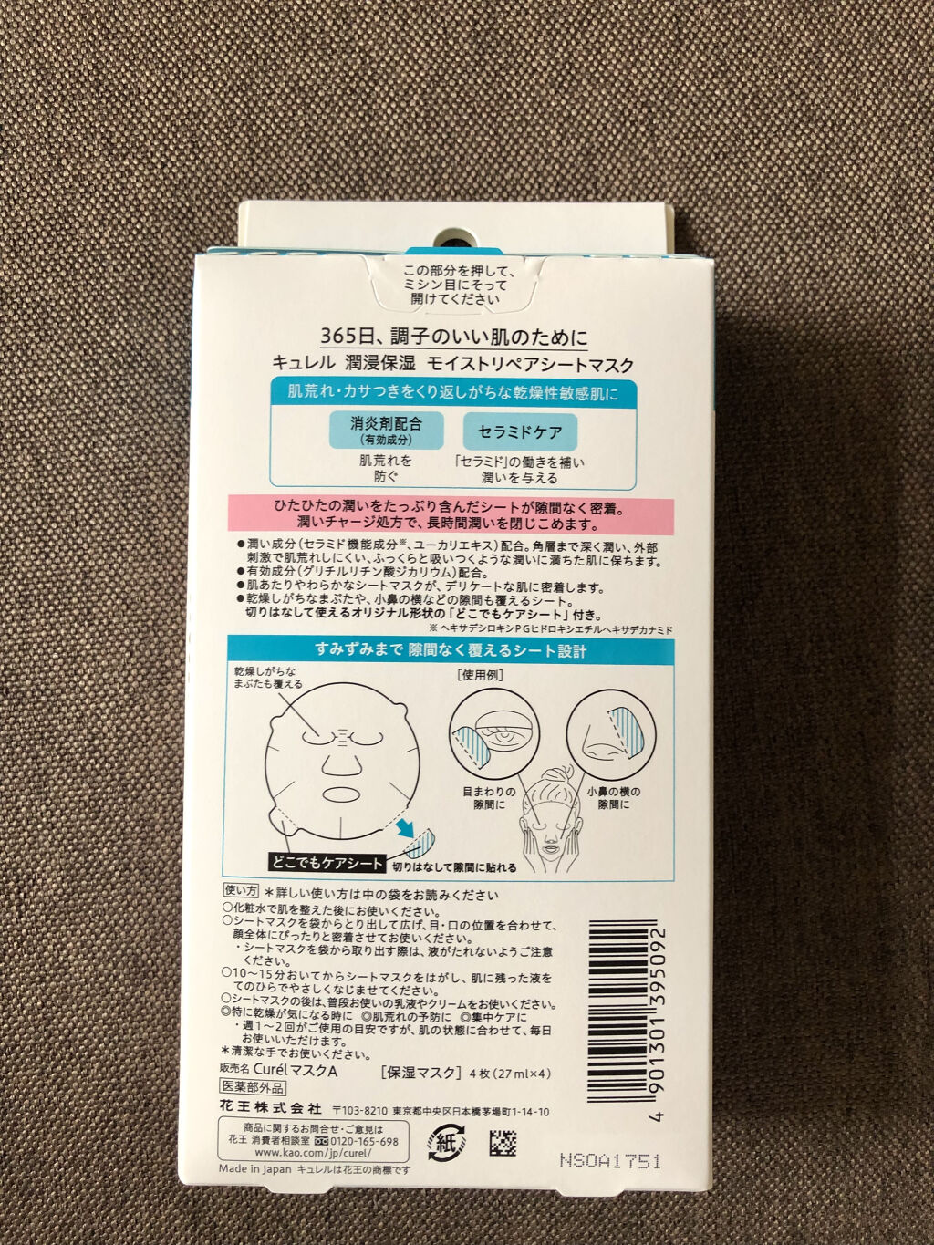 商品詳細情報キュレル 潤浸保湿 モイストリペアシートマスク