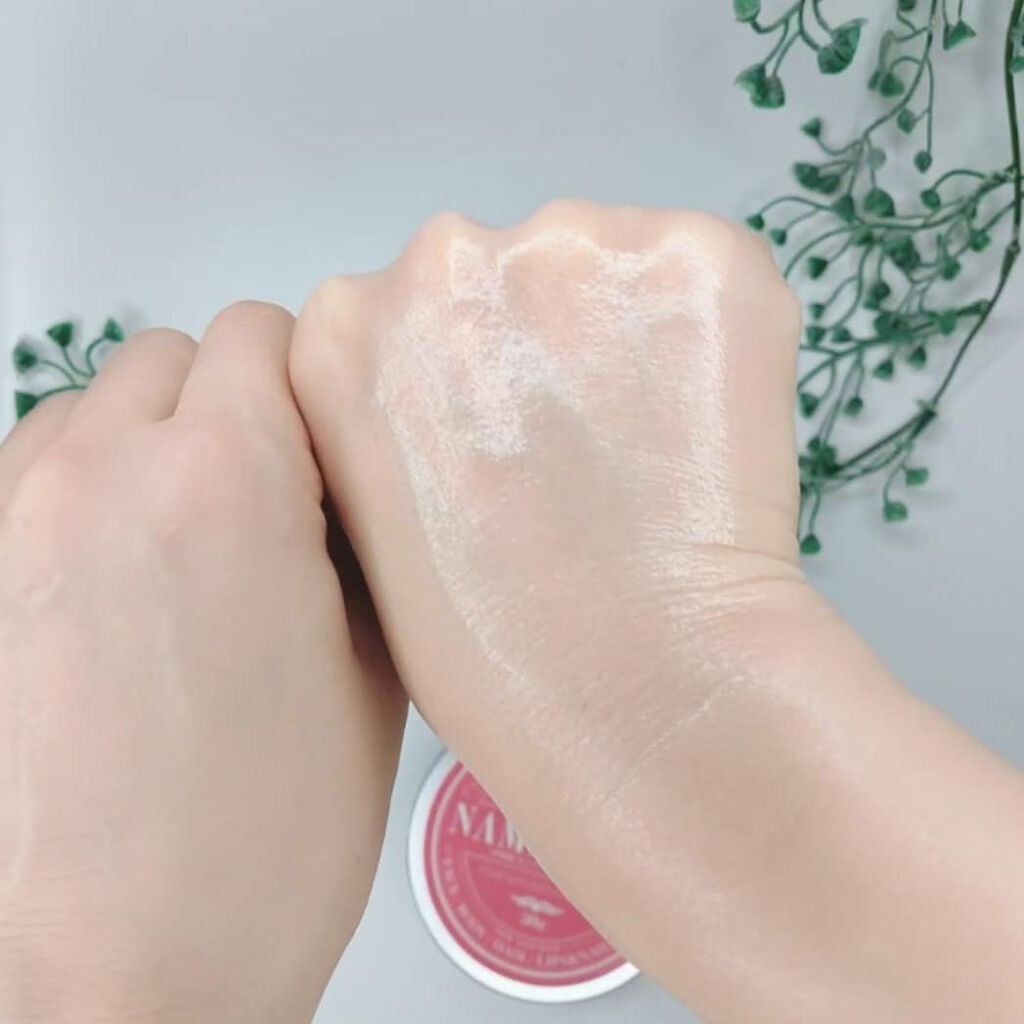 白色のクリームは体温でとろけて塗り広げやすく皮膚はさらっと仕上がる! こっくりとした少し固めの白色クリーム。 塗り広げていくとさらっとした肌に。 蓋を毎回回して外すのは地味にプチストレス。一体型で片手で開閉出来る蓋だともっと使いやすいだろうな~🙏