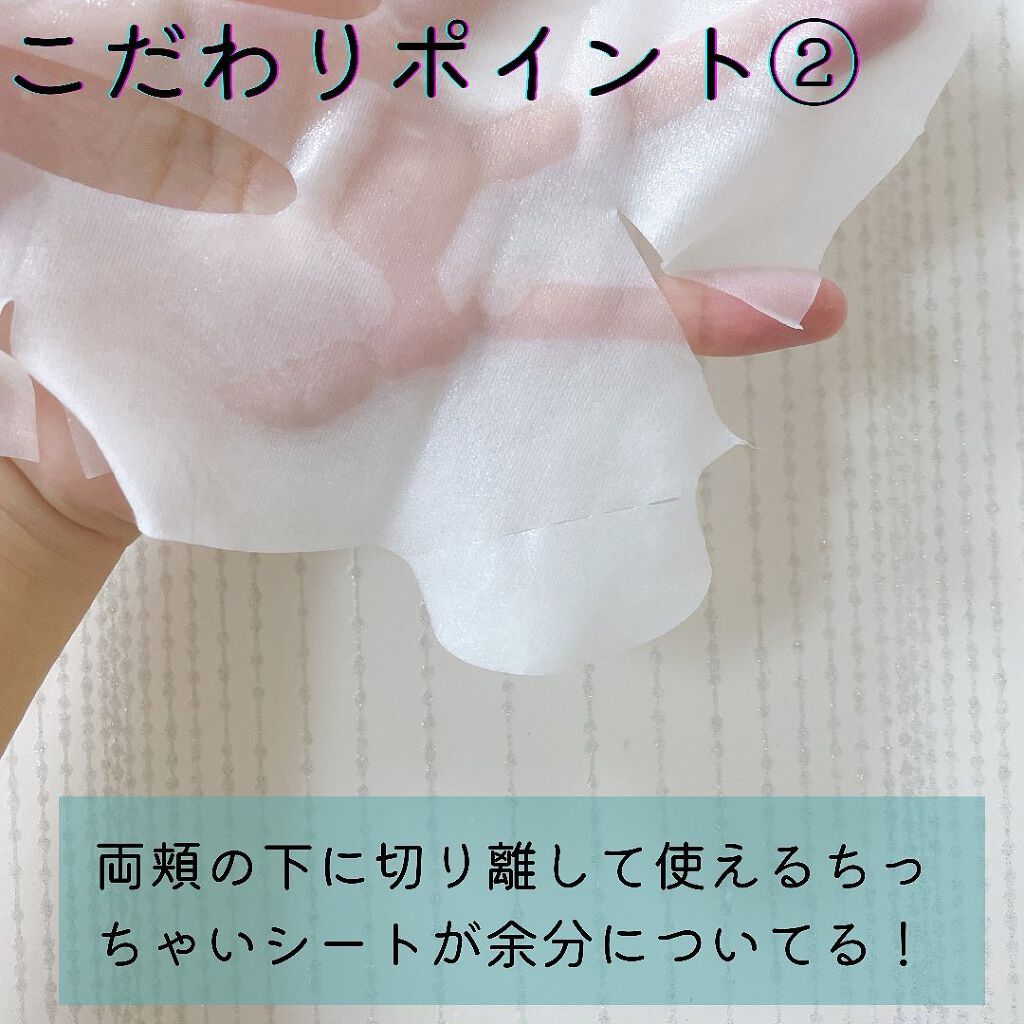 肌荒れを防ぐ消炎剤配合(有効成分) ✔️ セラミドの働きを補い、濃密な潤いをすみずみまで補給してくれるそう ✔️肌あたりやわらかなシートマスク 厚めのシートで肌あたりも良く、肌にピタッと密着してくれます。お肌が敏感な時でも優しい使い心地と、キメが整いもちっとする使用感がいいです。 マスクの下の部分は、切り離して小鼻等の隙間に貼れます。マスクのサイズによっては隙間ができるものもあるので、これも嬉しい。