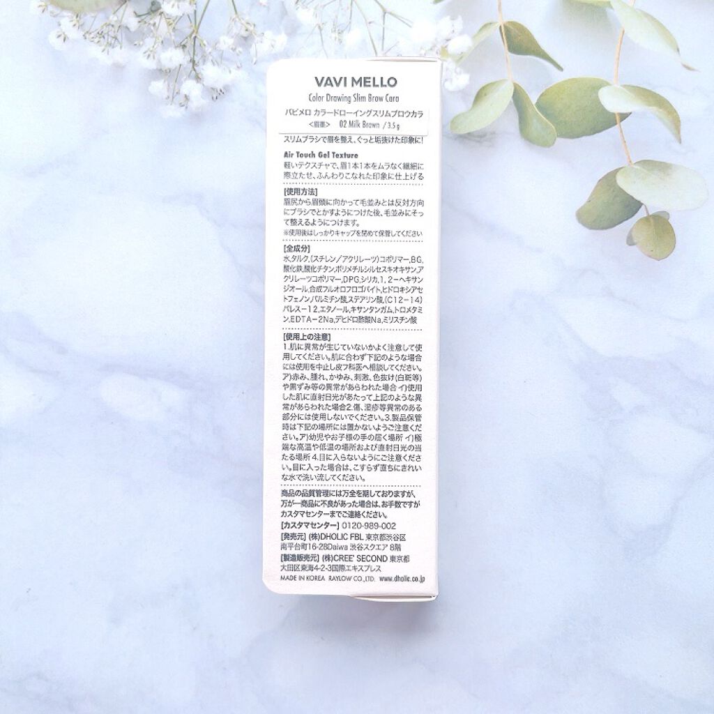 DHOLICのコスメブランド『VAVIMELLO』のアイブロウマスカラカラードローイングスリムブロウカラ04アッシュブラウンVAVIMELLOのコスメデザインがかわいいのでパレットとかいろいろ愛用しているのですが使いやすさも満点です☺️今回お...