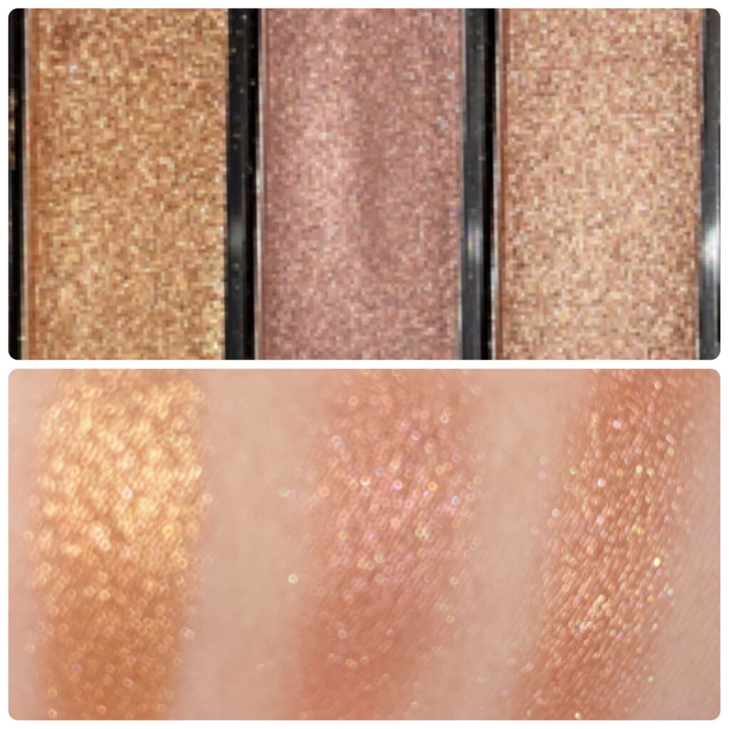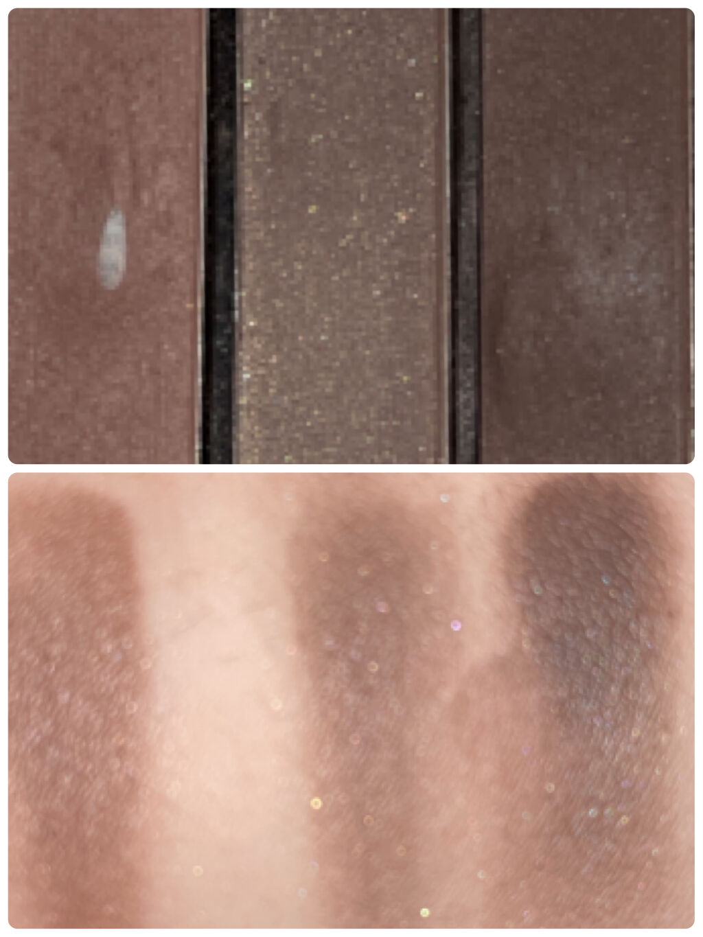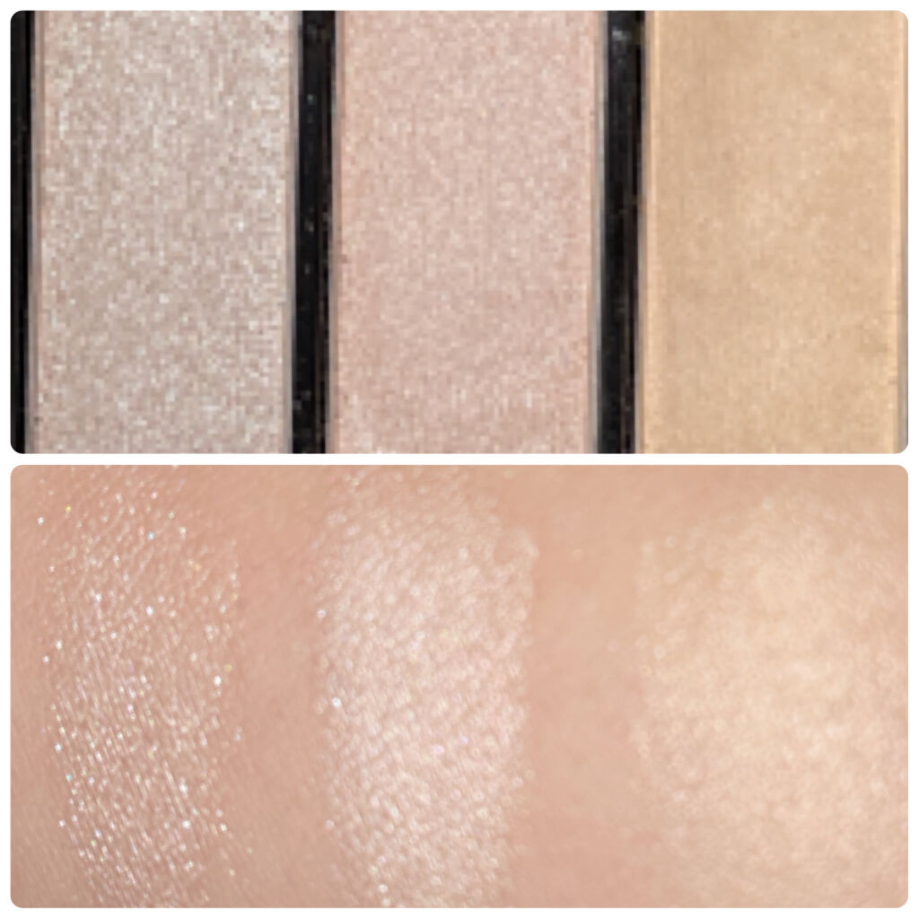 ドン・キホーテで買えるビューティーワールドBWPRM アイシャドウパレット トリックモード2のアーモンドガーリーです!! その中でも結構使いやすい色味が多く入っているのでは無いかと思います!! スウォッチ1枚目と2枚目はハイライトやアイシャドウベースに使いやすいカラー 発色がとても良いのも素敵なポイントです😭😭🥰 でも少しイエベさんに馴染みが良さそうなカラーが多いかな?と思う印象でした!!!