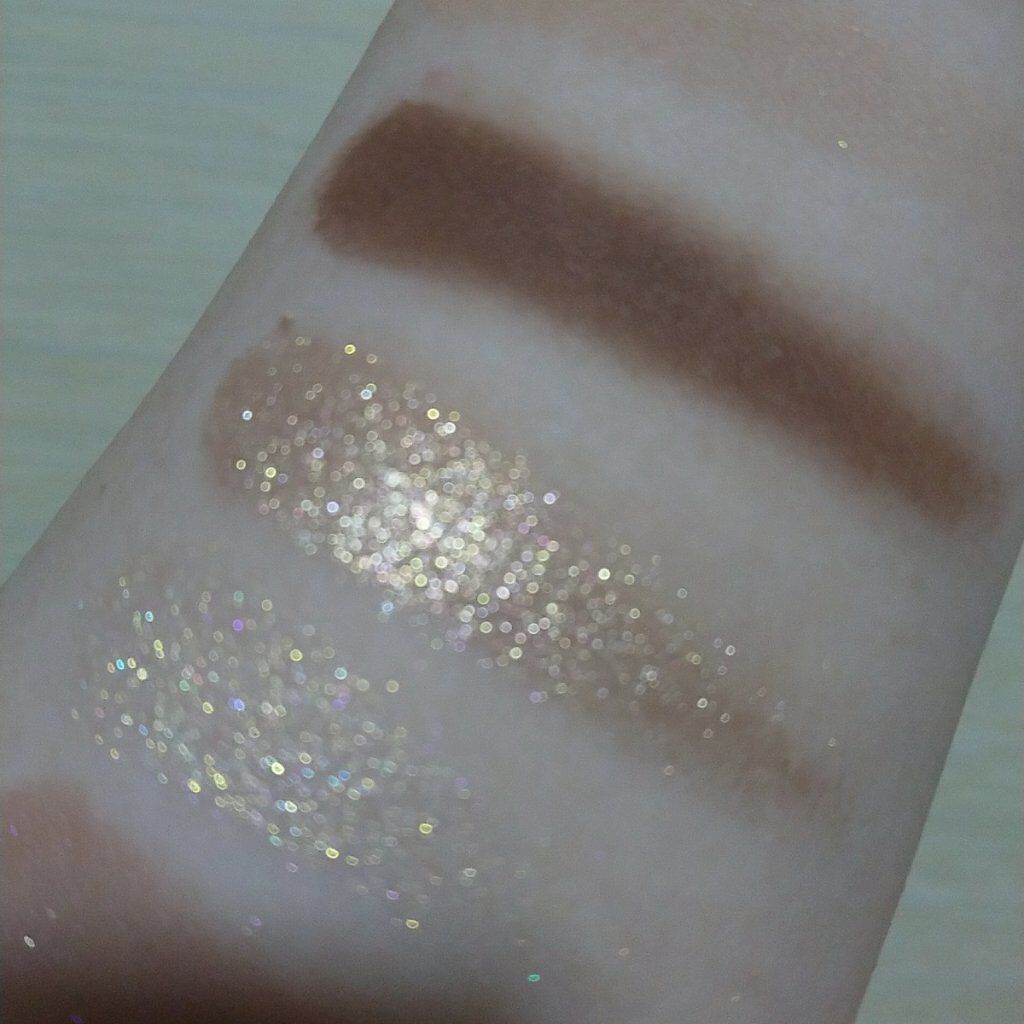 #えりぃのスウォッチです!#ケイト#KATE#3DプロデュースシャドウPU-1#ムーディーエクステンション1540円ピンク味の強いパープル。ラメは大粒なので目元以外には使えなさそう。粉質やラメ感が良くて、さすがケイト!肌なじみが良いのに、目元...