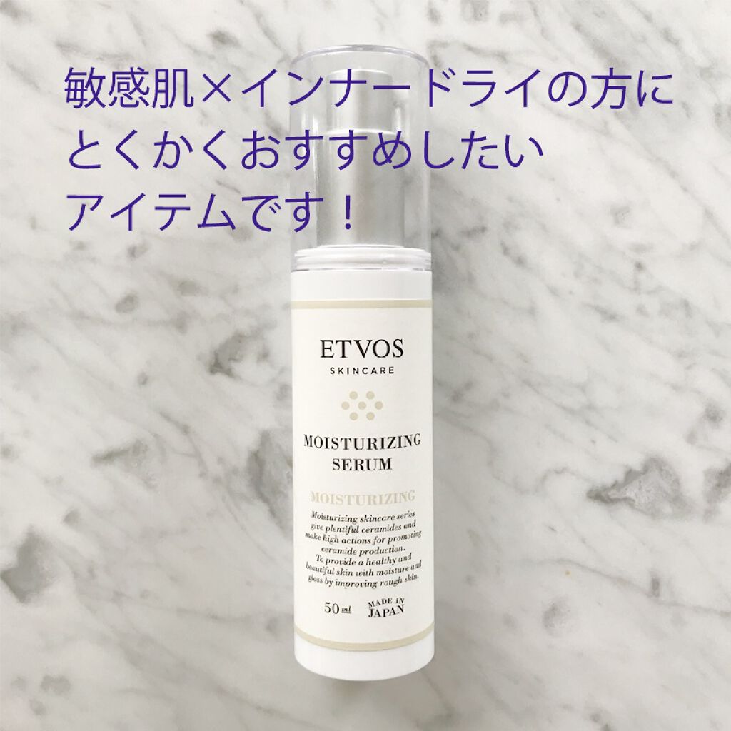 - 敏感肌・乾燥肌・インナードライ肌のために、肌のバリアのことを第一に考えて作られた、1 本で美容液+乳液を叶える、エトヴォス 1 番人気の保湿美容液。 うるおいに満ちたすこやかな肌のために必要不可欠な保湿成分セラミド。モイスチャライジングセラムでは 5 種のヒト型セラミド*を人の肌に存在するセラミドと同じ構造でバランス良く配合。 天然保湿因子(NMF)であるアミノ酸が角層のすみずみまで浸透し、うるおいバリアを整え、不安定に傾きがちなお肌を濃密なうるおいで満たします。 キメを整え、乾燥などの刺激を受けにくい健やかな肌へ導きます。 天然ラベンダー花水の穏やかで落ち着く香り。 [7つの不使用] 石油系界面活性剤、鉱物油、シリコン、着色料、合成香料、パラベン、アルコール *保湿成分:セラミドEOP,NG,NP,AG,AP