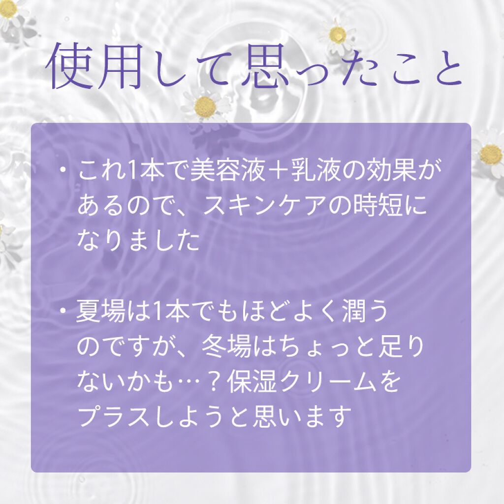 | すこしとろみのあるテクスチャーで、伸び肌馴染み共に◎べとつかないけどしっとり保湿してくれます! | 詳細を見る | ||