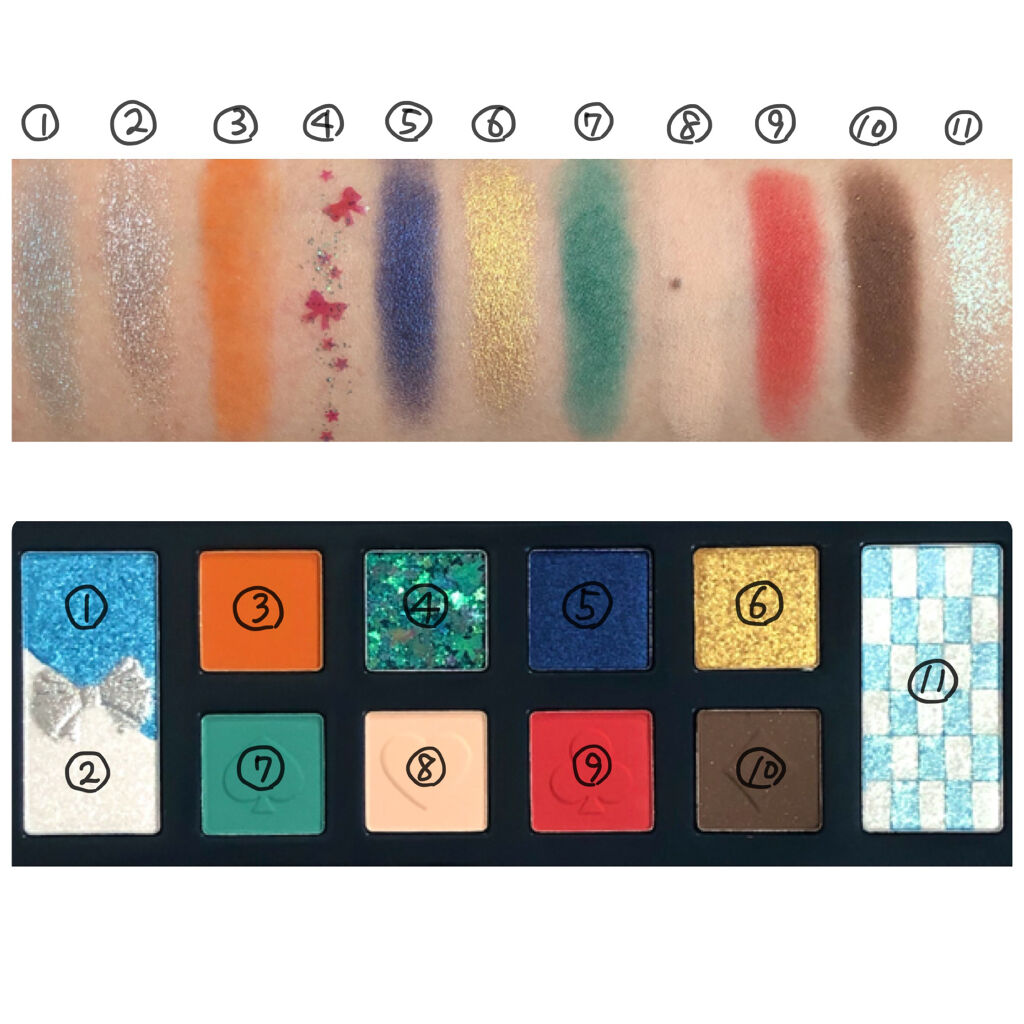 パッケージの上蓋がウォーターシールみたいにスパンコールが揺れ動くオシャレな作りで、オシャレなデザインなのが魅力。 ラメがめちゃくちゃかわいいしマットカラーの発色がえげつないのよ。 落ち着いた色合いのマットカラーも入ってるから意外と普段メイクにも使えちゃうというね。