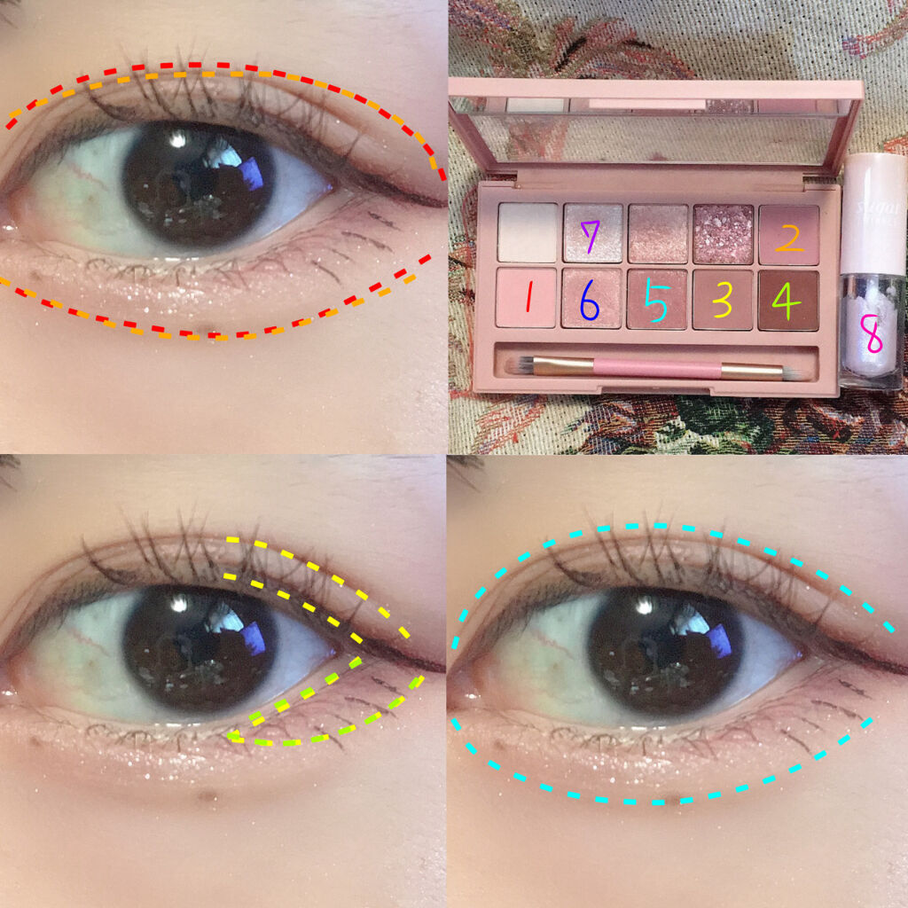 アイシャドウ👀・CLIOプロ アイ パレット01SIMPLY PINK グリッター✨・PERIPERAデュオ ポケット グリッター シャドウ03SALTED SUGARPLUM 涙袋のコンシーラー👧・キャンメイクカラーミキシングコンシーラーオレンジベージュ マスカラ💇♀️・rom&ndハンオールフィックスマスカラL02LONG ASH アイライン✏️・キャンメイククリーミータッチライナーダークブラウン・CEZANNE極細アイライナーEX20ブラウン