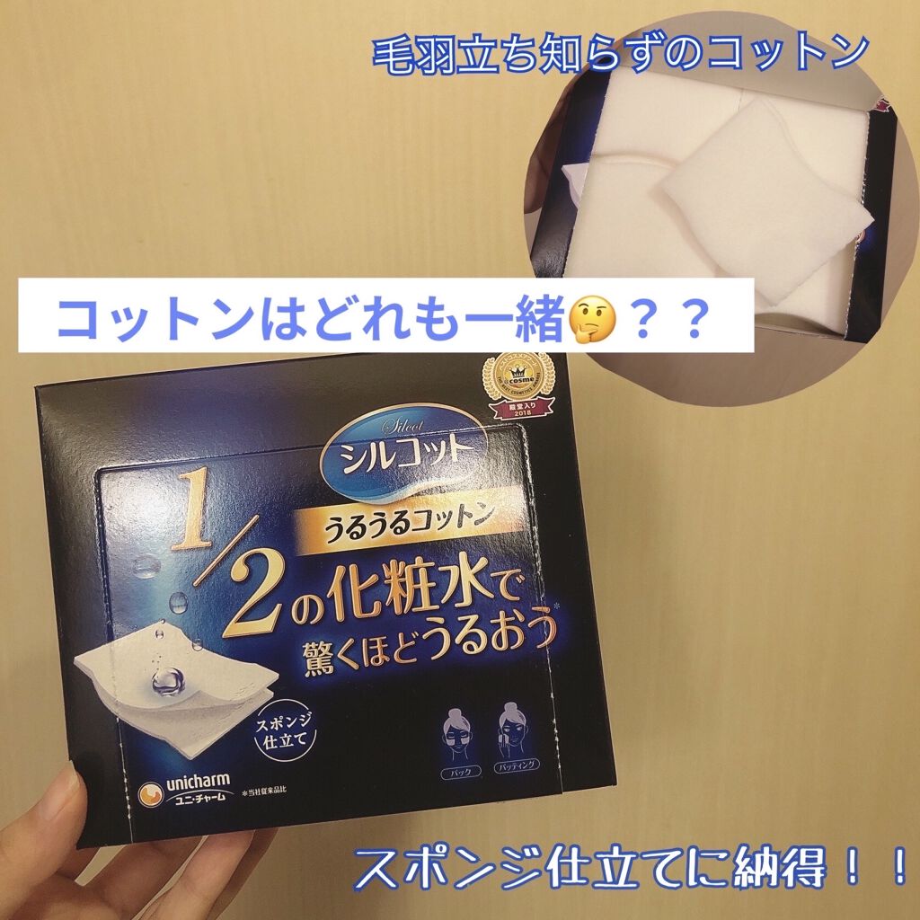 - ポイント①1/2の化粧水で驚くほどうるおう※1 じゅわっと染み出るスポンジ構造採用。化粧水の出てくる量がシルコットの2倍以上で、コットン本体に化粧水を殆ど残しません!※1当社製品比 ポイント②パッティングしても、はがしてもパックしても毛羽立たず、やわらか ポイント③2枚にはがせて目元にピタッと密着 2枚にはがしてパックできます。 目元にフィットしやすいカーブ形状です。