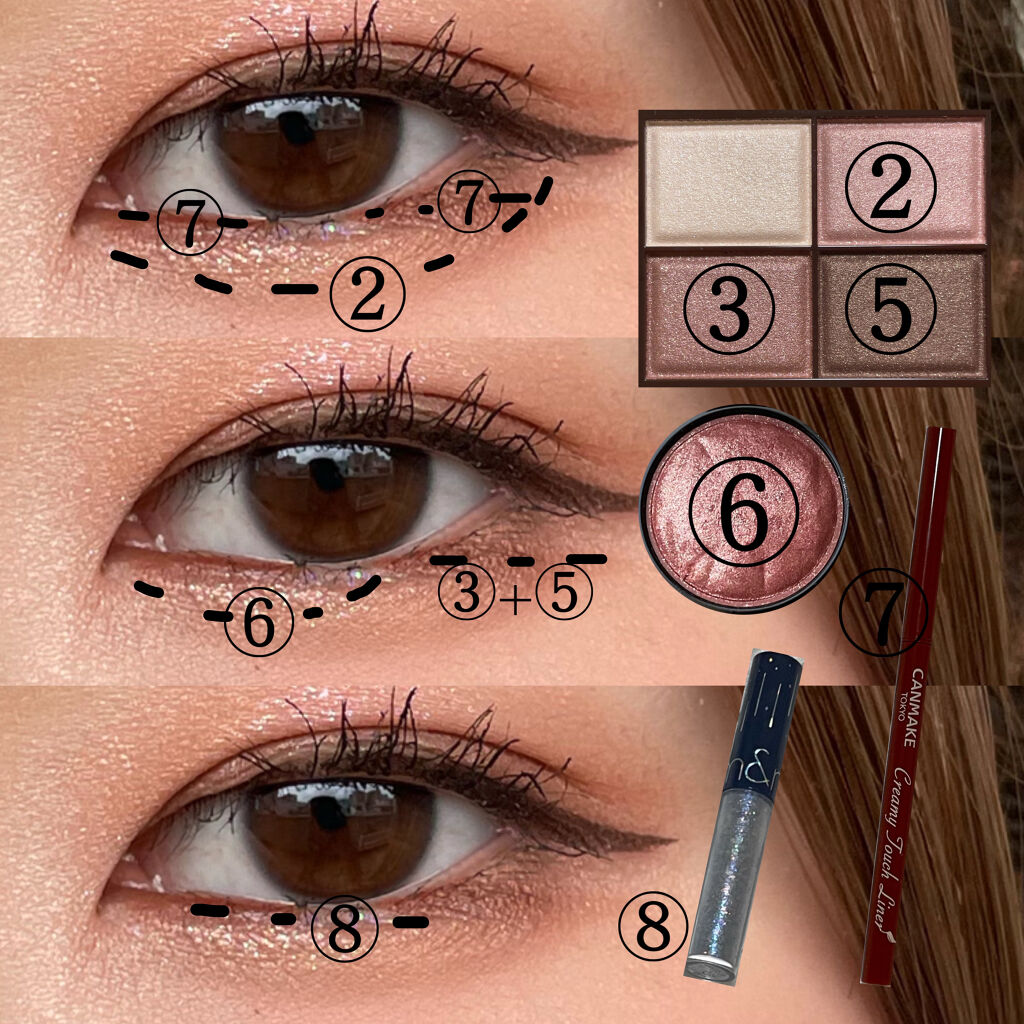パーフェクトマルチアイズ06番を使用してアイメイク✄✄使用コスメキャンメイクパーフェクトマルチアイズ06ロマンスベージュADDICTIONザアイシャドウスパークル004SPMariageキャンメイククリーミータッチライナー05ビターキャラメル...