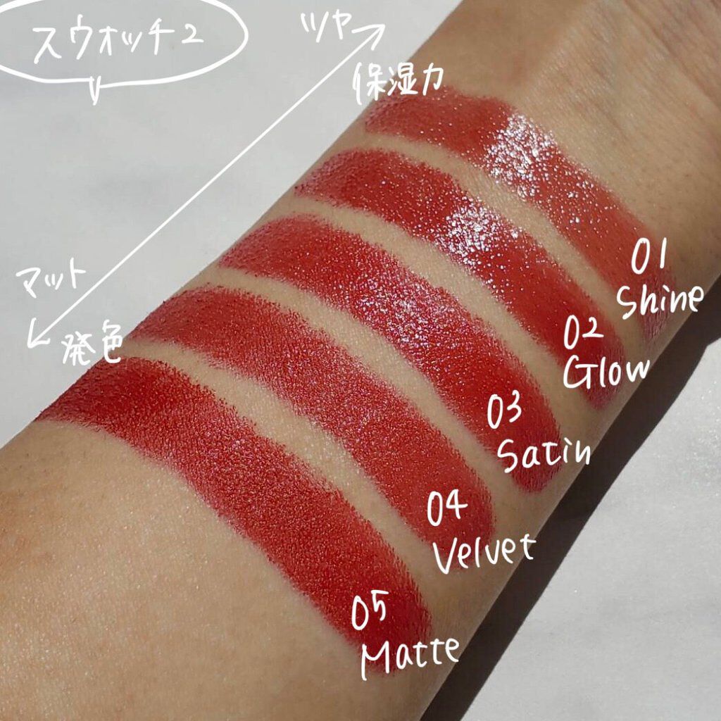 - 鮮やかな発色と艶やかなうるおいが続く、 5質感、51色のリップスティック。 スキンケアのカプセル技術を応用した2種のカプセル(ハイドロステイカプセル・カラーホールドカプセル)を配合。うるおいと彩りが心地よく続き、スキンケアで丁寧に仕立てられたような上質な唇をうみだすスキンケアルージュです。 5質感51色 5つの質感⇓ ・Shine(高ツヤ)タイプ 透明感と光に満ちた艶感のある仕上がり ・Glow(ツヤ)タイプ うるおいに満ちた濡れ艶感のある仕上がり ・Satin(セミツヤ)タイプ 質なうるおいと唇本来の艶感のある仕上がり ・Velvet(セミマット)タイプ やわらかなうるおいを抱えたソフトマットな仕上がり ・Matte(マット)タイプ 光をはらんだようなパウダリーマットな仕上がり