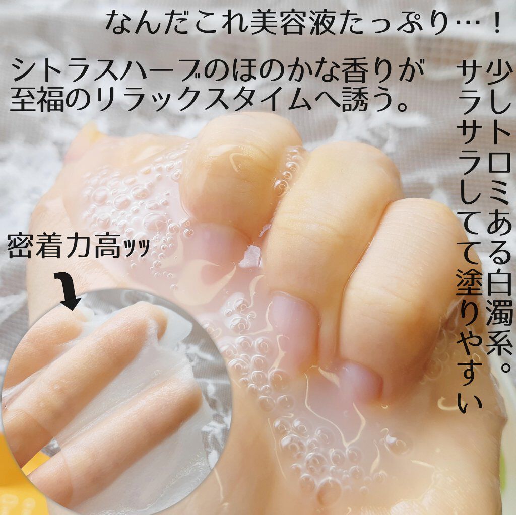 | スキンケアランキング第42位 | シートがみかん色でびっくり! とろっとろの液が含まれていて 貼り付けたらぴたーっとくっついてすごく気持ちいい! | 詳細を見る | |