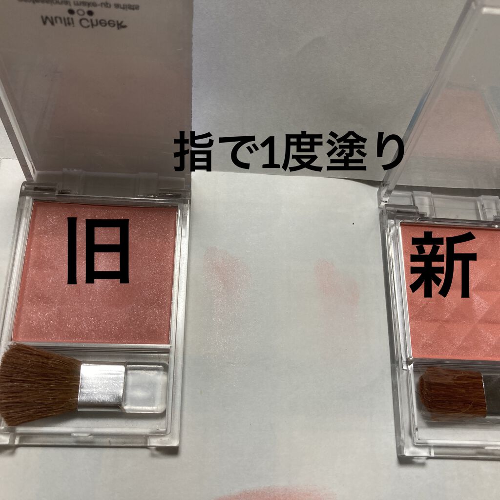 パフでポンポンと付けられるパウダーチークです('∀'*) 色味はピンク🩷 しかし、蓋が緩くて調節しづらい😢 壊れて大量に粉を床に落とした思い出があり(눈_눈) 発色も持ちも良くなかったので、誰かにあげたいと思って持ってて本気で忘れてました(゚д゚)! 一度描いただけではグレーに発色します💦 3回重ねるとやっと墨汁の色みたいになりますꉂ🤣𐤔