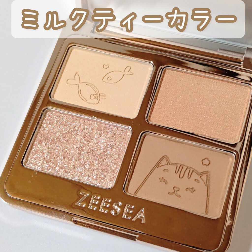 淡いミルクティーカラー🧋シアー、マット、マットラメ、グリッターのふんわり発色アイシャドウ😊⭐ズーシー 【夢幻燦爛 動物シリーズ 四色アイシャドウ】猫パケがとにかく可愛い😻#ズーシー#夢幻燦爛動物シリーズ四色アイシャドウ#ミルクティー...