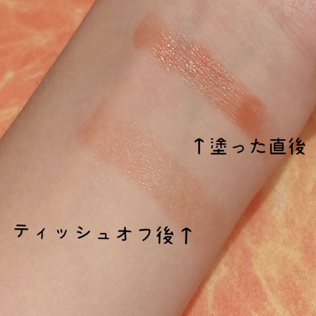 まず星4にした理由なんですけど、色が落ちやすいということです。 まず保湿力があるとこです! あとは色ですね😋オレンジ色ですが、子供っぽい色でもなく万人受けする感じの色です。 3枚目見てもらうと、口紅の容器自体(口紅が出るところ)が若干斜めにカットされてる形になってるので塗りやすいのも特徴です☺︎