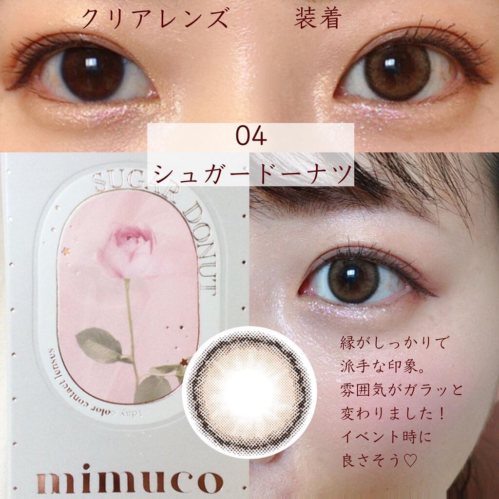 - ※2025年6月以降、商品パッケージ裏面・側面の一部表記を順次変更いたします。尚、これにかかる商品の交換・返品は承っておりません。 裸眼の色が明るい「茶目さん」、暗めな「黒目さん」、どちらの瞳の方が着けても不自然にならずあか抜けるレンズ。 日常使いしやすいブラウンベースのレンズをはじめ、肩ひじ張らずに可愛くなれるナチュラルなレンズとなっております。 ■mimuco ふんわり透明感セット キャラメルスフレ/ブラウンフォンデュ/メープルミルクティー/ポムカヌレ(各2枚入り) ■mimucoちゅるん透明感セット ゼリーグレー/シュガードーナツ/メローストロベリー/ピュレグレージュ(各2枚入り) カラーコンタクトレンズの不適正使用による眼障害の危険性等などがあります。 ●コンタクトレンズは高度管理医療機器です。不十分な洗浄・消毒など不適切なケアや、長時間・交換期間を超えた装用により、アレルギー性結膜炎、角膜感染症、角膜潰瘍等の重篤な眼障害が発生する危険性があります ●ご使用前に取扱説明書を確認してください 使用上の留意事項 ●眼科医院等を受診してからお求めください ●眼に異常を感じたら直ちにレンズ使用を中止し、お近くの眼科等で診察を受けてください ●医師の指示にしたがってご使用ください ●コンタクトレンズを装用する場合、自覚症状がなくても、眼科医院等での定期検査を受けてください ●レンズに不具合がある場合は使用しないでください