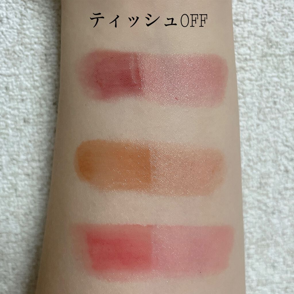 唇から蒸発する水分を活用して密着ジェル膜に変化するこのリップ 塗ってしばらくしてからティッシュオフすると透明の膜だけがティッシュに移りリップカラーは唇に密着したままでした🙌 そしてこの陽炎というカラー… イエベ春のThe粘膜色〜😭👏✨ 最高に可愛いお色!!