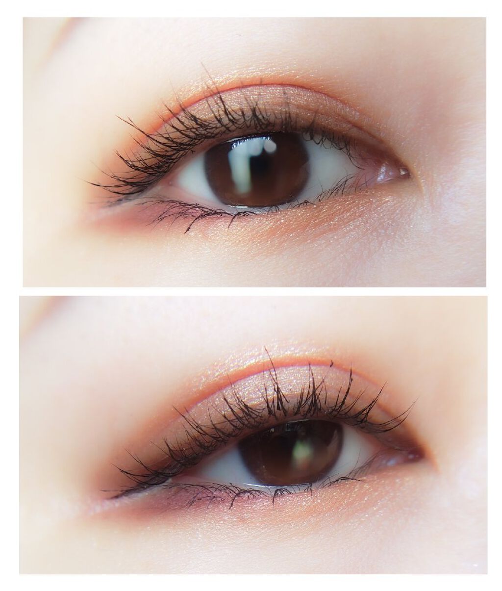 緋影は、右上アイホール左下二重幅+下まぶた 明雫は、下まぶた 宵雫は、目頭と黒目上 これめちゃくちゃ可愛いです!顔に秋が来てたまらんです!! 明雫と宵雫のたっぷりラメをとてもよく生かせてると思う(自画自賛メイク)限定なのほんともったいない体操。