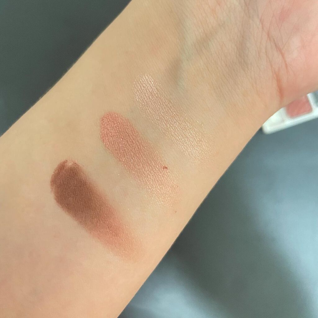 - 3色で簡単に明るく大きな目元に。 しっとり感触のアイシャドウ。 くすみを飛ばす明るさベース、ひとえ・奥二重の方でも幅広く塗れる肌なじみの良い中間色、 濃密高発色の締め色が目の輪郭を強調し大きな目元に。 微細パール配合でくすみを飛ばし、明るい目元へ。