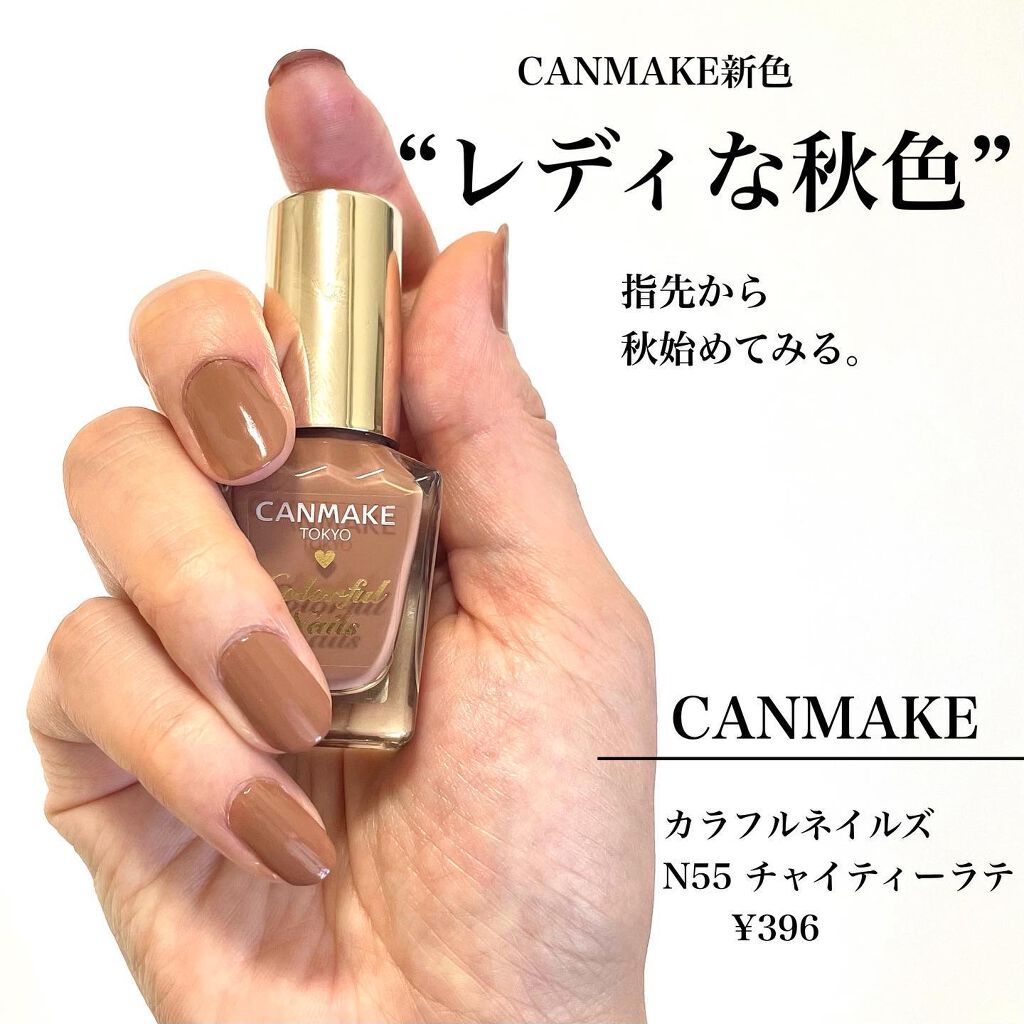 キャンメイクカラフルネイルズ🩷🤎N55チャイティーラテ¥396このシリーズ大好きで集めてるんですけどN55は淡いピンクベージュって感じで可愛いです🩷派手にしたくないけどおしゃれな色にしたいって時に良さそうですよね^^#キャンメイク#カラフルネ...