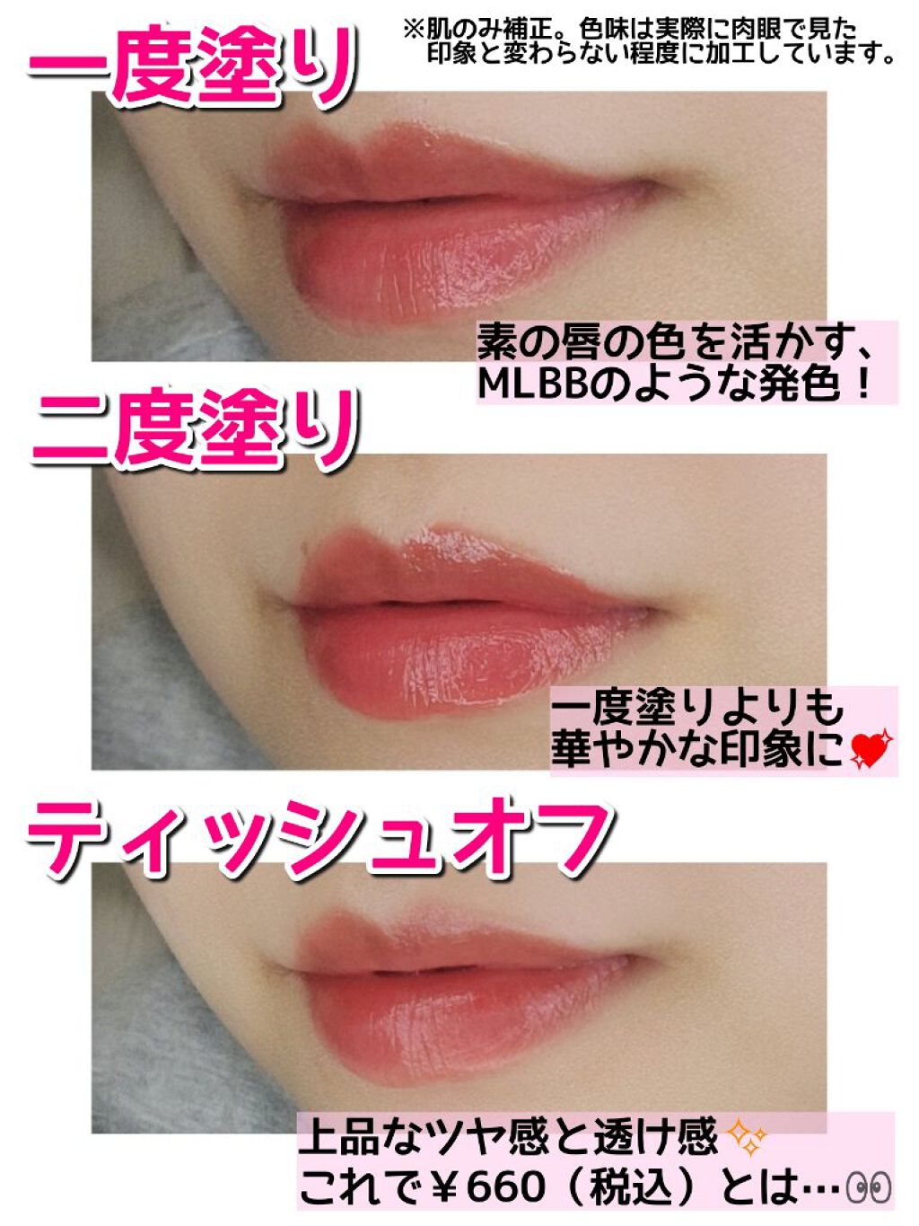| 口紅・グロス・リップライナーランキング第44位 | 乾燥しにくく、艶感をキープしてくれて、ティント特有の色持ちも良く、ぷるっとしたジューシーな唇に仕上がります | 詳細を見る | |