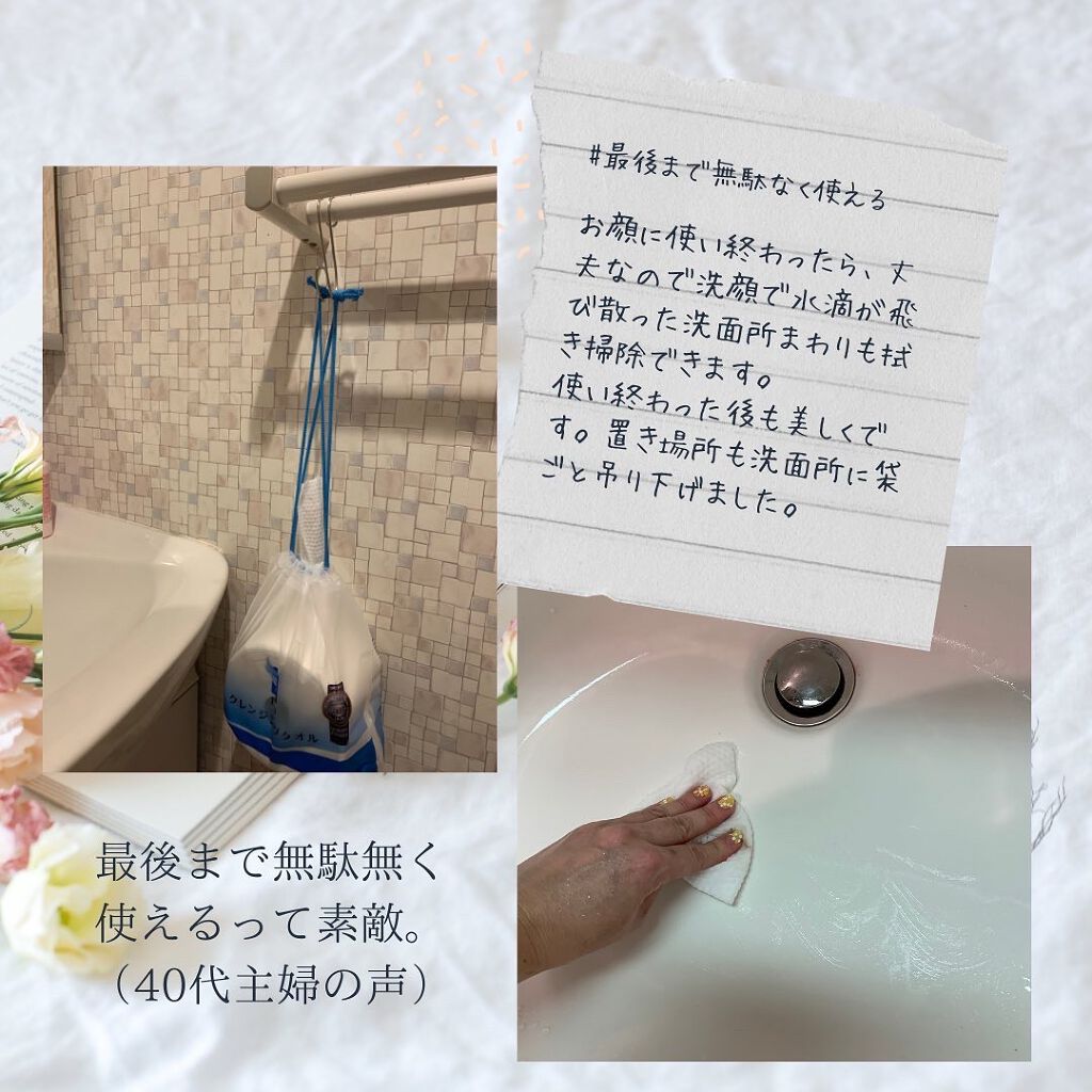ITOクレンジングタオルはロールタイプの使い捨てタオル♡ ミシン目が入っているので、必要な長さで切り離して使えるのが便利! エンボス加工になっていて、見た目も可愛い そして使い心地もやわらかで優しい肌触りだよ🙆♀️ メイク落としを含ませてなんとクレンジングにも使えるの👀✨