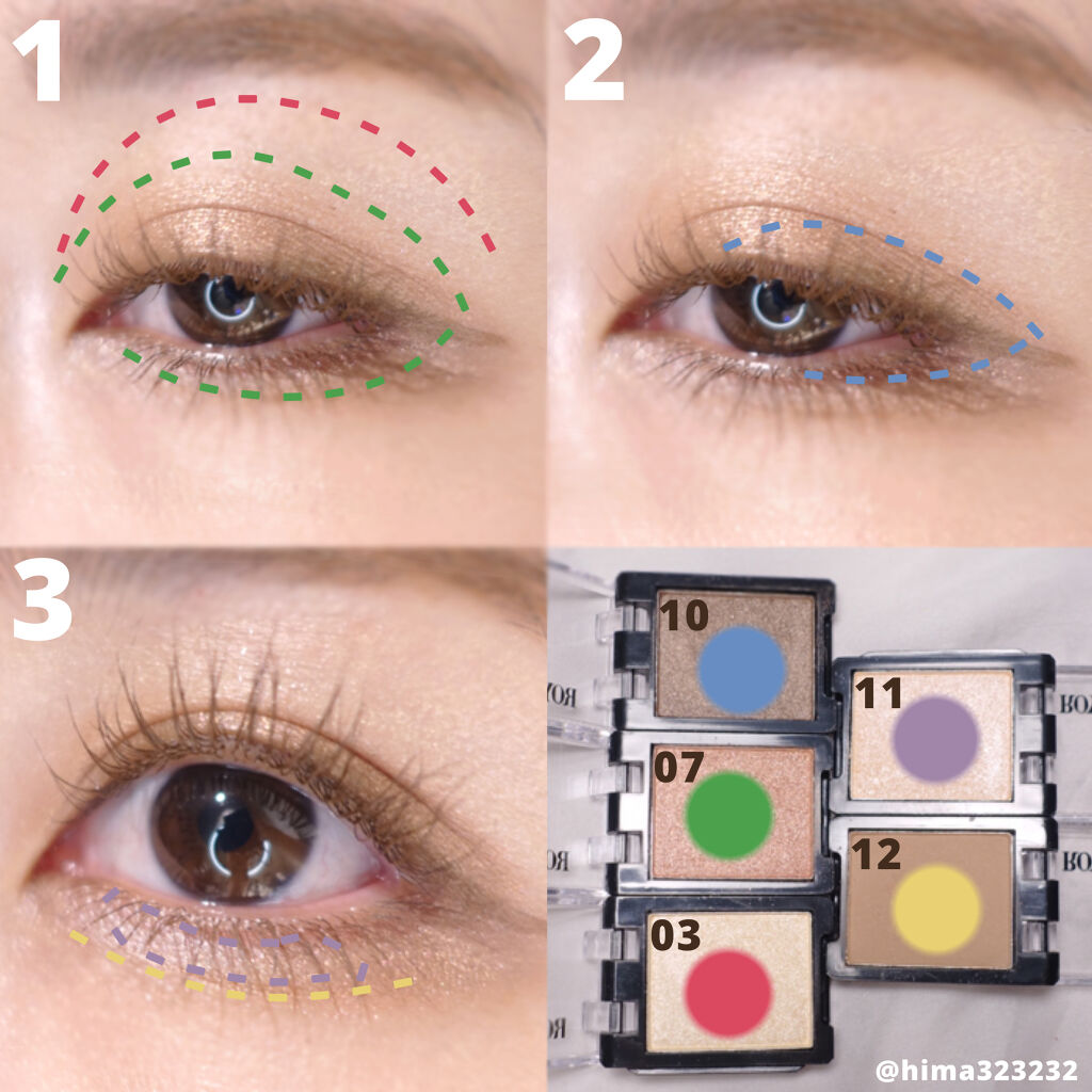 ①指でベタ塗りしない ②濃い色を広く入れすぎない ③目頭側に広く色を入れない ④下目尻は2色混ぜて使う ⑤色の境目はぼかすorラメをのせる ⑥涙袋の影は入れすぎない ⑦涙袋にラメを乗せすぎない ⑧マスカラ・グリッターはつける量を調節する ⑨マスカラのダマはコームでとかす ⑩アイラインは目尻だけ