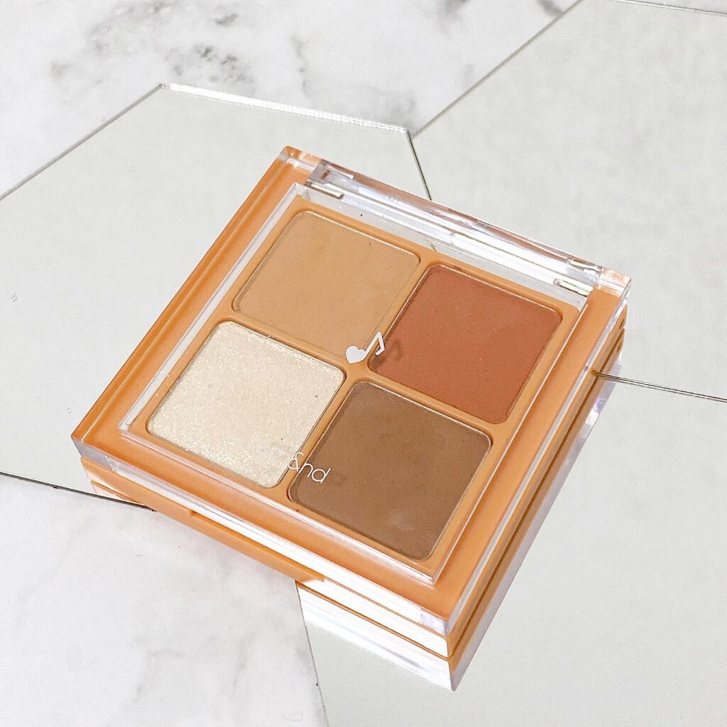 捨て色なしでこのパレット一つで目元が完成👁 見たまま発色で粉とびもなくて、密着力も高いのか、ヨレない🙆♀️ まさにドライアップル🍎を思わせる秋らしい配色、イエベさん向きかな? この大きさと使いやすい4色っていうのがいいね😁 メイク初心者でもまとまりのある目元ができるよ🙋♀️
