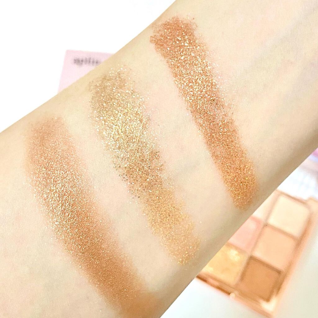 ベージュ系だから肌馴染みはよく、ピンクやゴールドなど多色ラメが綺麗✨ アイホール全体にベースとして、また、中央にも最後に指で乗せてさらにツヤ出し🥰 ブルベでも浮かないベージュブラウン🐻💕 これ一色でグラデーション作れるから楽だし何より発色が最高すぎる。 黒目の下に細く入れたらギラギラしすぎず、いい感じに涙袋メイクできた🥳 目元はブラウン系で締めてるから全体的にぼやけた印象にもならず、いい感じにピンクリップでまとまった☺️ シアーな発色で高保湿。時間が経っても乾燥知らずだからこれからの季節特に重宝しそう❣️ やや白みのあるピンクで透明感あるからぱっと明るく肌を見せてくれるのも嬉しい…