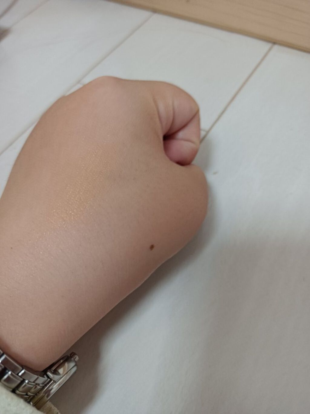 ゴールドと書いてあるので、時期的にいいかなと思って開封したら、見たまんまの色で、ほぼカーキ。 カーキにシルバー?ゴールドラメが入ってる?って感じで、私はベースに使ってるのですが、重ねれば重ねるほどカーキになっていきました。 こんなにカーキなら秋に使えば良かったと後悔してます。 今使ってるもう一つのアイシャドウが、暗い赤系のモーブという色で、一緒に使うと、私の肌のせいもあってか、黒っぽくなりました。 このコスメはクリームタイプで、ものすごい前に売っていたものなので、今は店頭においてませんので、こういうのもあったなーって感じで見ていただければと思います。