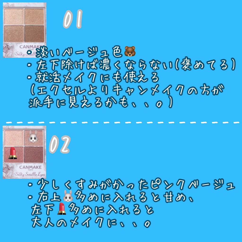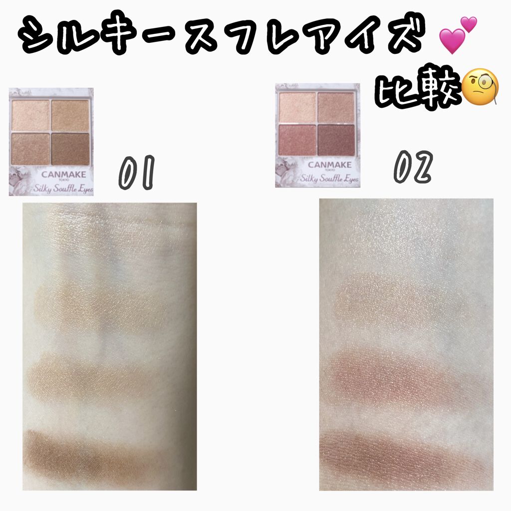 CANMAKEのアイシャドウ🌸#シルキースフレアイズ02番の方をよく使うかも😀他の色も気になる。プチプラなのによかったです😍発色は良いけど少し寄れるときがあるかも。オレンジ系も気になる。キャンメイクシルキースフレアイズ01ノーブルベージュ02...