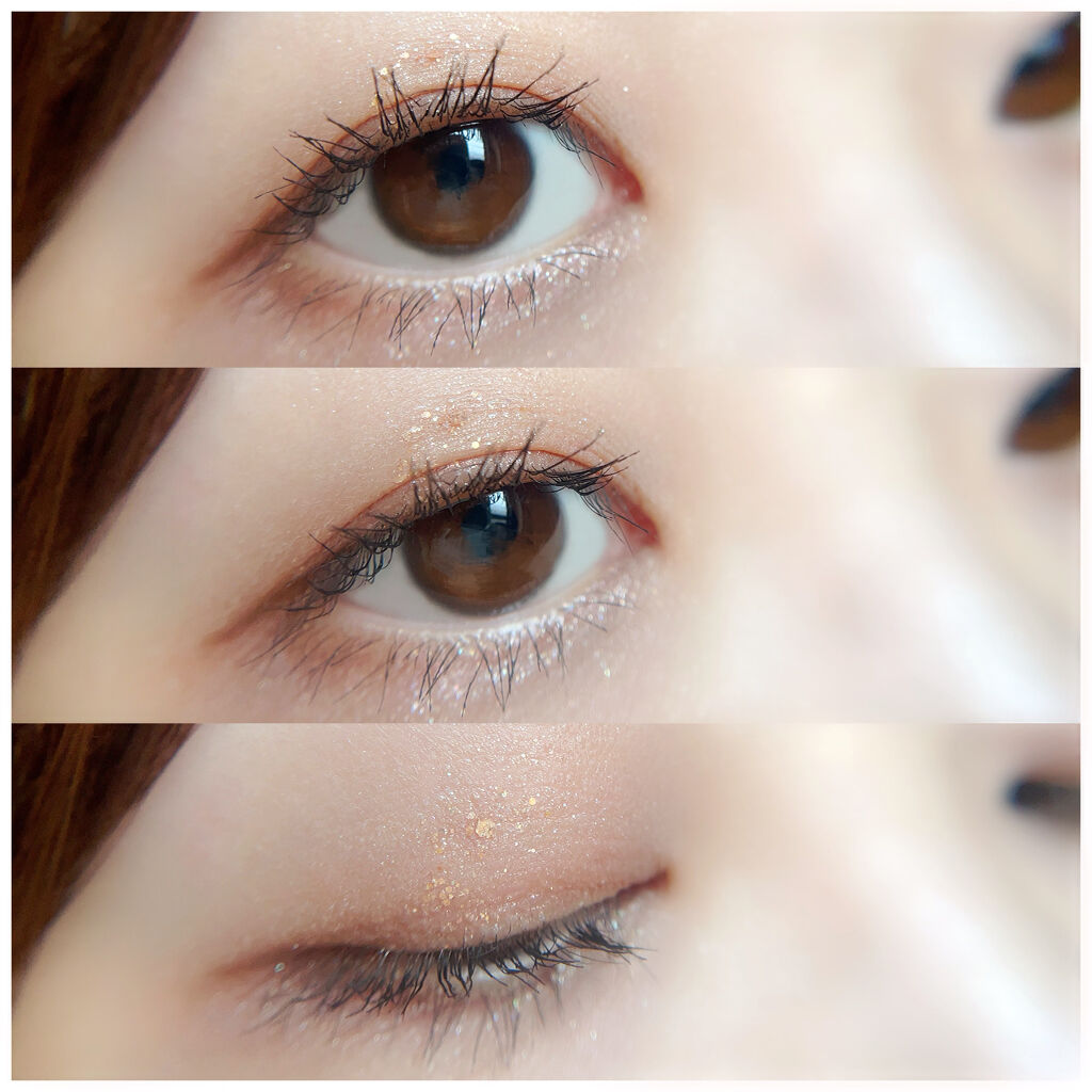 右上のベージュがまぶたを明るく整えてくれるおかげで次にのせる左下のカラーが綺麗に発色。 左上のぎっしり詰まったラメを涙袋に塗ると瞳がうるっとしているように見えて可愛いです ✧˖ 締色のブラウンにもパールが配合されているのでライン使いだけでなく、グラデーションになるように幅広めに塗っても素敵に仕上がります。 付属のダブルチップが少し柔らかめで肌あたりが良いところも ◎ どんなシーンでも使える、ベージュを基調としたナチュラルなカラーが揃ったパレットなのでひとつ持っておくとすごく便利です ˖ ࣪⊹