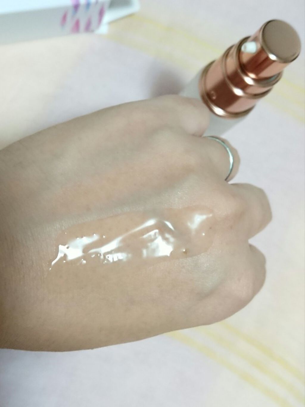 化粧水の後、3~4滴なじませるだけで水光肌を叶えてくれる美容液。容器がとてもお洒落!とろみのあるテクスチャーで、肌に伸ばしてすぐは結構しっとり感が強いです。時間が経つとさらっとした感覚に変わるので重いとかべたつくとかは感じなかったです。華やか...