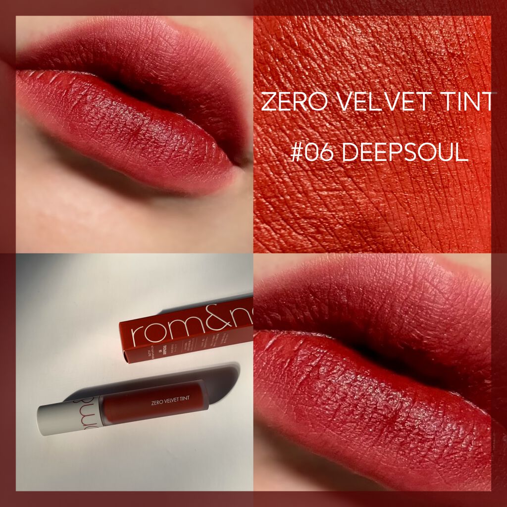 rom&ndのゼロベルベットティントはマットリップの中でも乾燥しにくく、内側で水分が保たれてるような質感です! 色持ちが◎です🙆🏻♀️︎🙆🏻♀️︎rom&ndの時点で色持ちが良いってことは周知の事実かもしれないですね、、 06のディープソウル(DEEP SOUL)はイエべ秋さんにおすすめのブラウンレッドカラーです!