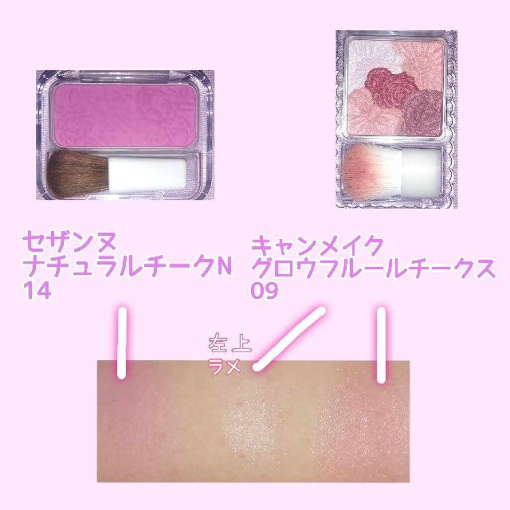 パールリッチなツヤ×ハリ感チーク。 多幸感あふれるゴールドパールたっぷりピーチカラー 贅沢なパールヴェールをまとったような、いきいきとしたツヤ頬を演出。 恋する少女のようなピーチチーク🍑 ぽっと照れた、幸せほっぺになります😳💕︎ 明るく可愛らしいコーラルカラーがベースになっていて、中にはゴールドラメがたっぷり✨ 華やかなツヤ感が出て、とても綺麗です😍 プチプラとは思えない輝きです💮 流石CEZANNEのパールグロウシリーズ、、、!! ブラシで塗るともう少しナチュラルな印象になるので、調整も可能です🙆♀️ イエベ春の方はどんぴしゃで似合うと思います💛