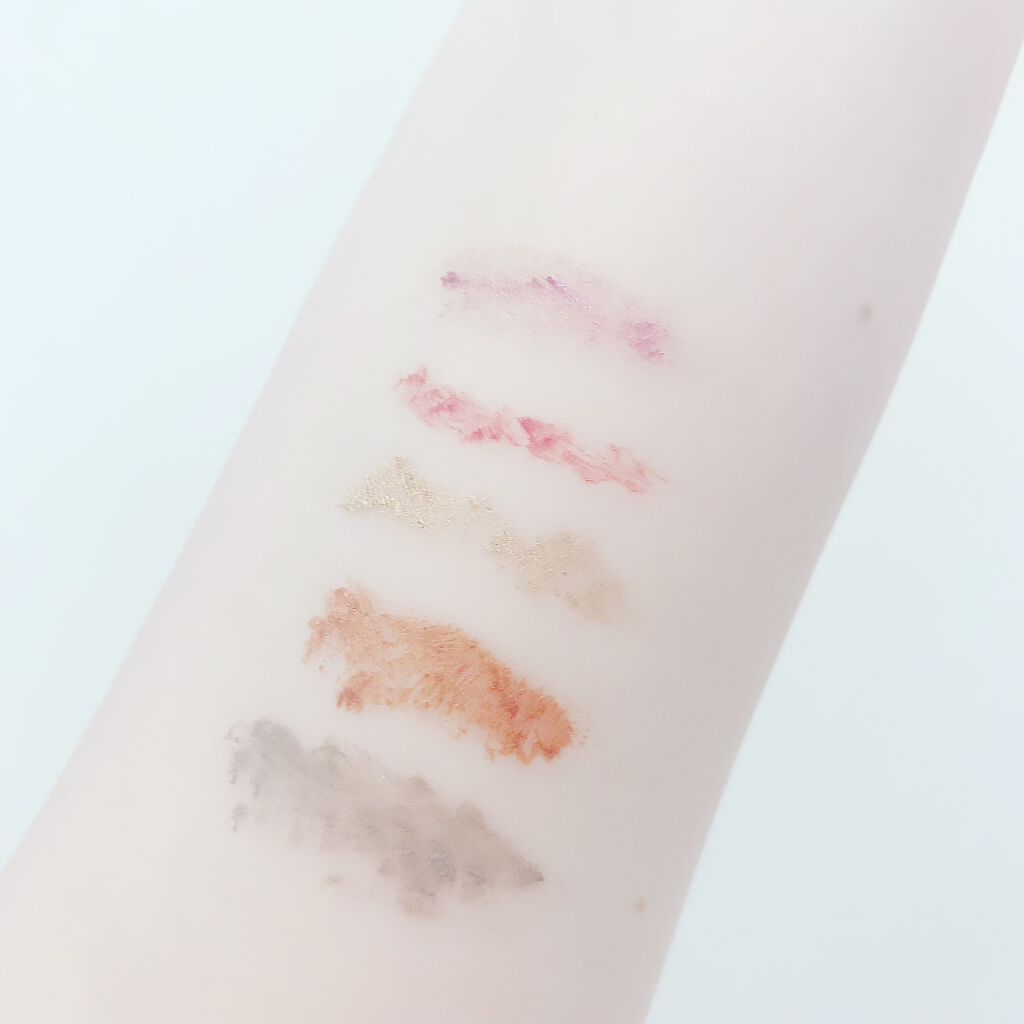 - <01 ウォームグレージュ> 水、アクリレーツコポリマー、ミツロウ、カルナウバロウ、BG、ステアリン酸、ペンチレングリコール、ワセリン、TEA、セテアリルアルコール、アクリレーツコポリマーアンモニウム、加水分解コンキオリン、ヒドロキシエチルセルロース、アラビアゴム、イソステアリン酸PEG-20ソルビタン、ステアリン酸グリセリル、トリステアリン酸スクロース、フェノキシエタノール、カーボンブラック、マイカ、酸化鉄、酸化チタン、シリカ、水酸化AI、AI <02 コッパーブラウン> 水、アクリレーツコポリマー、ミツロウ、カルナウバロウ、BG、ステアリン酸、ペンチレングリコール、ワセリン、TEA、セテアリルアルコール、アクリレーツコポリマーアンモニウム、加水分解コンキオリン、ヒドロキシエチルセルロース、アラビアゴム、イソステアリン酸PEG-20ソルビタン、ステアリン酸グリセリル、トリステアリン酸スクロース、フェノキシエタノール、カーボンブラック、マイカ、酸化鉄、酸化チタン <03 ローズゴールド> 水、アクリレーツコポリマー、ミツロウ、カルナウバロウ、BG、ステアリン酸、ペンチレングリコール、ワセリン、TEA、セテアリルアルコール、アクリレーツコポリマーアンモニウム、加水分解コンキオリン、ヒドロキシエチルセルロース、アラビアゴム、イソステアリン酸PEG-20ソルビタン、ステアリン酸グリセリル、トリステアリン酸スクロース、フェノキシエタノール、赤226、酸化鉄、シリカ、AI <04 ディープローズ> 水、アクリレーツコポリマー、ミツロウ、カルナウバロウ、BG、ステアリン酸、ペンチレングリコール、ワセリン、TEA、セテアリルアルコール、アクリレーツコポリマーアンモニウム、加水分解コンキオリン、ヒドロキシエチルセルロース、アラビアゴム、AMPD、イソステアリン酸PEG-20ソルビタン、ステアリン酸グリセリル、トリステアリン酸スクロース、フェノキシエタノール、カーボンブラック、カルミン、マイカ、酸化鉄、酸化チタン、シリカ、酸化スズ <05 トゥインクルパープル> 水、アクリレーツコポリマー、ミツロウ、カルナウバロウ、BG、ステアリン酸、ペンチレングリコール、ワセリン、TEA、セテアリルアルコール、アクリレーツコポリマーアンモニウム、加水分解コンキオリン、ヒドロキシエチルセルロース、アラビアゴム、イソステアリン酸PEG-20ソルビタン、ステアリン酸グリセリル、トリステアリン酸スクロース、フェノキシエタノール、カーボンブラック、マイカ、酸化鉄、酸化チタン、シリカ、合成フルオロフロゴパイト、コンジョウ、酸化スズ