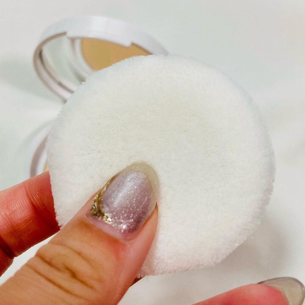 パッケージが可愛くて購入💕 パフがふわふわなところ。 パッケージもかなり可愛いけど分厚い! パウダーは部分は網になっているタイプ。 パウダーも細かくて柔らかい。 結構周りに飛ぶのが気になる。 パフに粉はなかなかつきにくいのでしっかりパフで押さえないと付かない。 薄付きでつけることができる。 普通につけると2〜3回だと全然つかないのでしっかり押さえてつけないといけないところが難しい。 しっかりつきさえすればカバー力もあるしマット感はあるので満足はできるので使い方をマスターするのが必須かも。