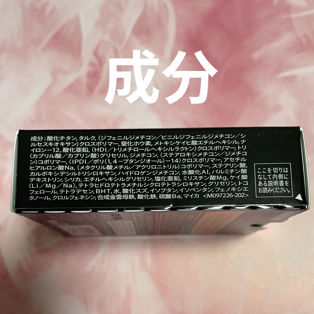 - <オークル00> 酸化チタン、タルク、(ジフェニルジメチコン/ビニルジフェニルジメチコン/シルセスキオキサン)クロスポリマー、窒化ホウ素、メトキシケイヒ酸エチルヘキシル、ナイロン-12、酸化亜鉛、(HDI/トリメチロールヘキシルラクトン)クロスポリマー、トリ(カプリル酸/カプリン酸)グリセリル、ジメチコン、(ステアロキシメチコン/ジメチコン)コポリマー、(IPDI/ポリ(1,4-ブタンジオール)-14)クロスポリマー、アセチルヒアルロン酸Na、(メタクリル酸メチル/アクリロニトリル)コポリマー、ステアリン酸、カルボキシデシルトリシロキサン、ハイドロゲンジメチコン、水酸化Al、パルミチン酸デキストリン、シリカ、エチルヘキシルグリセリン、塩化亜鉛、ミリスチン酸Mg、ケイ酸(Li/Mg/Na)、テトラヒドロテトラメチルシクロテトラシロキサン、グリセリン、トコフェロール、テトラデセン、BHT、水、酸化スズ、イソブタン、イソペンタン、フェノキシエタノール、クロルフェネシン、合成金雲母鉄、酸化鉄、硫酸Ba、マイカ <ベビーピンクオークル00> 酸化チタン、タルク、(ジフェニルジメチコン/ビニルジフェニルジメチコン/シルセスキオキサン)クロスポリマー、窒化ホウ素、メトキシケイヒ酸エチルヘキシル、ナイロン-12、酸化亜鉛、(HDI/トリメチロールヘキシルラクトン)クロスポリマー、トリ(カプリル酸/カプリン酸)グリセリル、ジメチコン、(ステアロキシメチコン/ジメチコン)コポリマー、(IPDI/ポリ(1,4-ブタンジオール)-14)クロスポリマー、アセチルヒアルロン酸Na、(メタクリル酸メチル/アクリロニトリル)コポリマー、ステアリン酸、カルボキシデシルトリシロキサン、ハイドロゲンジメチコン、水酸化Al、パルミチン酸デキストリン、シリカ、エチルヘキシルグリセリン、塩化亜鉛、ミリスチン酸Mg、ケイ酸(Li/Mg/Na)、テトラヒドロテトラメチルシクロテトラシロキサン、グリセリン、トコフェロール、テトラデセン、BHT、水、酸化スズ、イソブタン、イソペンタン、フェノキシエタノール、クロルフェネシン、合成金雲母鉄、酸化鉄、硫酸Ba、マイカ <ベージュオークル10> 酸化チタン、タルク、(ジフェニルジメチコン/ビニルジフェニルジメチコン/シルセスキオキサン)クロスポリマー、窒化ホウ素、メトキシケイヒ酸エチルヘキシル、ナイロン-12、酸化亜鉛、(HDI/トリメチロールヘキシルラクトン)クロスポリマー、トリ(カプリル酸/カプリン酸)グリセリル、ジメチコン、(ステアロキシメチコン/ジメチコン)コポリマー、(IPDI/ポリ(1,4-ブタンジオール)-14)クロスポリマー、アセチルヒアルロン酸Na、(メタクリル酸メチル/アクリロニトリル)コポリマー、ステアリン酸、カルボキシデシルトリシロキサン、ハイドロゲンジメチコン、水酸化Al、パルミチン酸デキストリン、シリカ、エチルヘキシルグリセリン、塩化亜鉛、ミリスチン酸Mg、ケイ酸(Li/Mg/Na)、テトラヒドロテトラメチルシクロテトラシロキサン、グリセリン、トコフェロール、テトラデセン、BHT、水、酸化スズ、イソブタン、イソペンタン、フェノキシエタノール、クロルフェネシン、合成金雲母鉄、酸化鉄、硫酸Ba、マイカ <オークル10> 酸化チタン、タルク、(ジフェニルジメチコン/ビニルジフェニルジメチコン/シルセスキオキサン)クロスポリマー、窒化ホウ素、メトキシケイヒ酸エチルヘキシル、ナイロン-12、酸化亜鉛、(HDI/トリメチロールヘキシルラクトン)クロスポリマー、トリ(カプリル酸/カプリン酸)グリセリル、ジメチコン、(ステアロキシメチコン/ジメチコン)コポリマー、(IPDI/ポリ(1,4-ブタンジオール)-14)クロスポリマー、アセチルヒアルロン酸Na、(メタクリル酸メチル/アクリロニトリル)コポリマー、ステアリン酸、カルボキシデシルトリシロキサン、ハイドロゲンジメチコン、水酸化Al、パルミチン酸デキストリン、シリカ、エチルヘキシルグリセリン、塩化亜鉛、ミリスチン酸Mg、ケイ酸(Li/Mg/Na)、テトラヒドロテトラメチルシクロテトラシロキサン、グリセリン、トコフェロール、テトラデセン、BHT、水、酸化スズ、イソブタン、イソペンタン、フェノキシエタノール、クロルフェネシン、合成金雲母鉄、酸化鉄、硫酸Ba、マイカ <ピンクオークル10> 酸化チタン、タルク、(ジフェニルジメチコン/ビニルジフェニルジメチコン/シルセスキオキサン)クロスポリマー、窒化ホウ素、メトキシケイヒ酸エチルヘキシル、ナイロン-12、酸化亜鉛、(HDI/トリメチロールヘキシルラクトン)クロスポリマー、トリ(カプリル酸/カプリン酸)グリセリル、ジメチコン、(ステアロキシメチコン/ジメチコン)コポリマー、(IPDI/ポリ(1,4-ブタンジオール)-14)クロスポリマー、アセチルヒアルロン酸Na、(メタクリル酸メチル/アクリロニトリル)コポリマー、ステアリン酸、カルボキシデシルトリシロキサン、ハイドロゲンジメチコン、水酸化Al、パルミチン酸デキストリン、シリカ、エチルヘキシルグリセリン、塩化亜鉛、ミリスチン酸Mg、ケイ酸(Li/Mg/Na)、テトラヒドロテトラメチルシクロテトラ