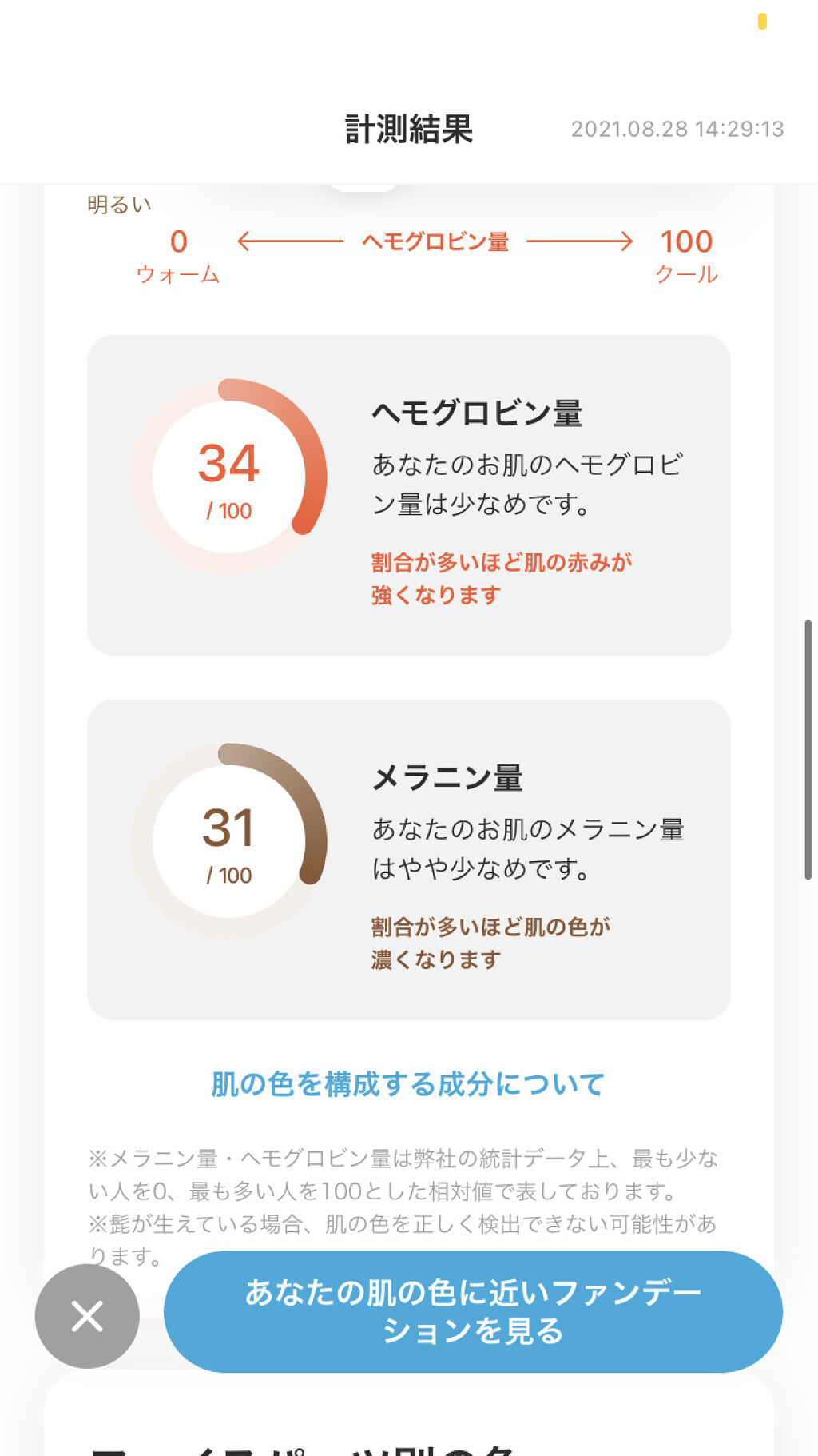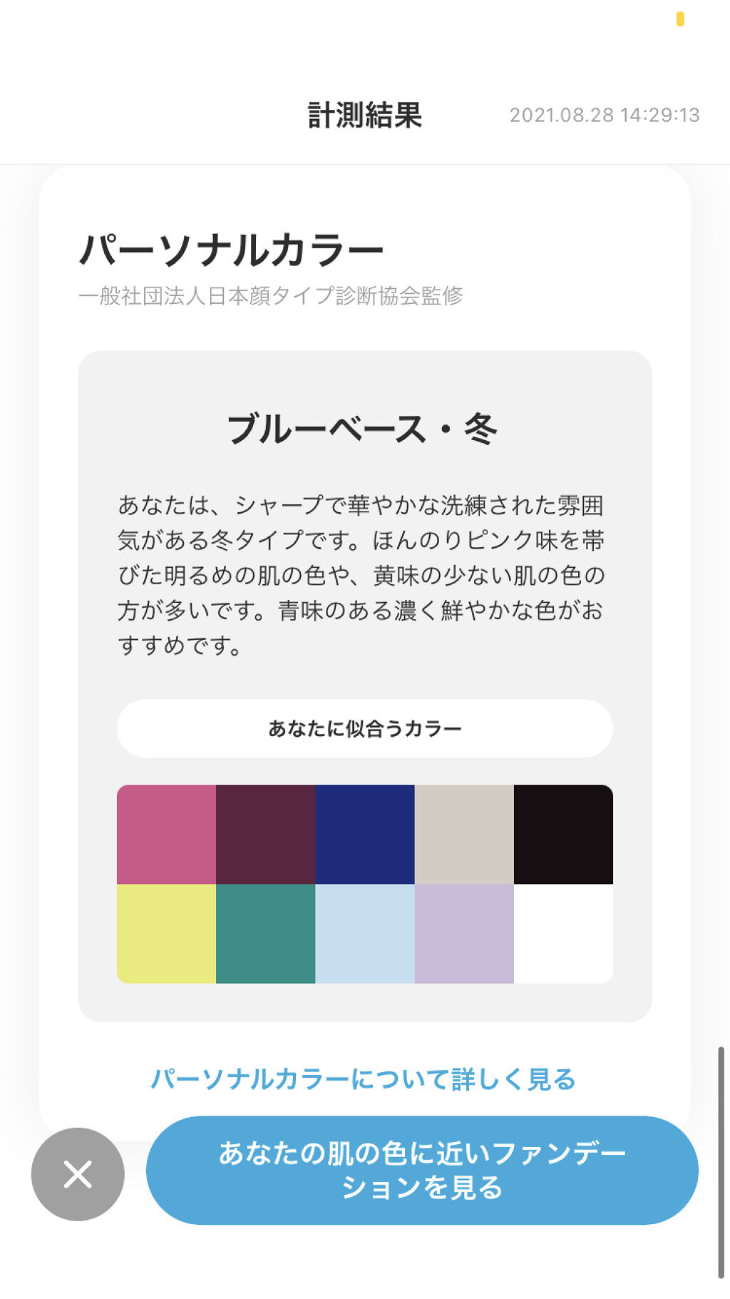 自宅で簡単手軽にパーソナルカラー診断ができるZOZOGLASSを申し込んでみた!無料だし、すぐに届いたよ。 ブルベ冬⁉️😨 そ、そうきたか……。こりゃ軽いアイデンティティ・クライシスだぜ……ふぅ……。 PCの他にも、トーンや赤み、ヘモグロビンやメラニンの量、フェイスパーツ別の色も出てなかなか細やか&本格的です。