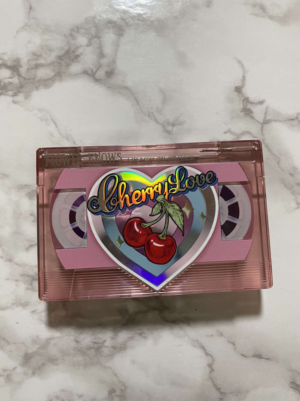 flowerKnowsCherryLoveレトロマグネティックアイシャドウ🌷青ラメとピンクラメがばりかわいい♡白ベースのラメたちはまぶたに先に仕込んだり涙袋に使うのほんとによかった🥰気分によって透明感メイクや愛されメイクできるけん万能すぎるパ...