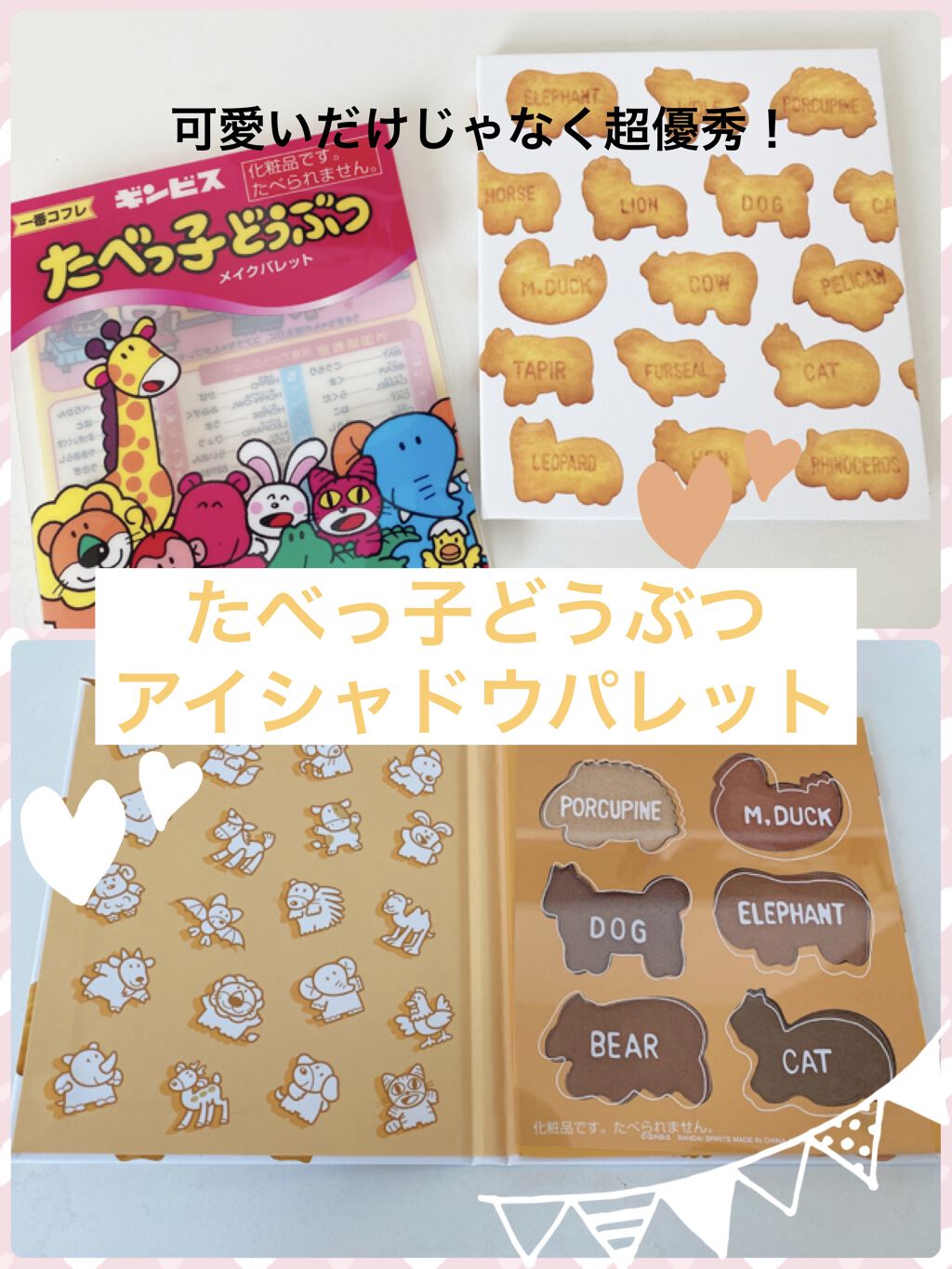 あの"お菓子"がコスメになったよ🐻🙊🐨一番コフレたべっ子どうぶつ🍪D賞おめかしリップたべっ子どうぶつパッケージデザイン(赤)🍪E賞わくわくどうぶつツインカラーサルさんとカバさんたべっ子どうぶつの仲間たちがデザインされた2色入のアイシャドウが可...