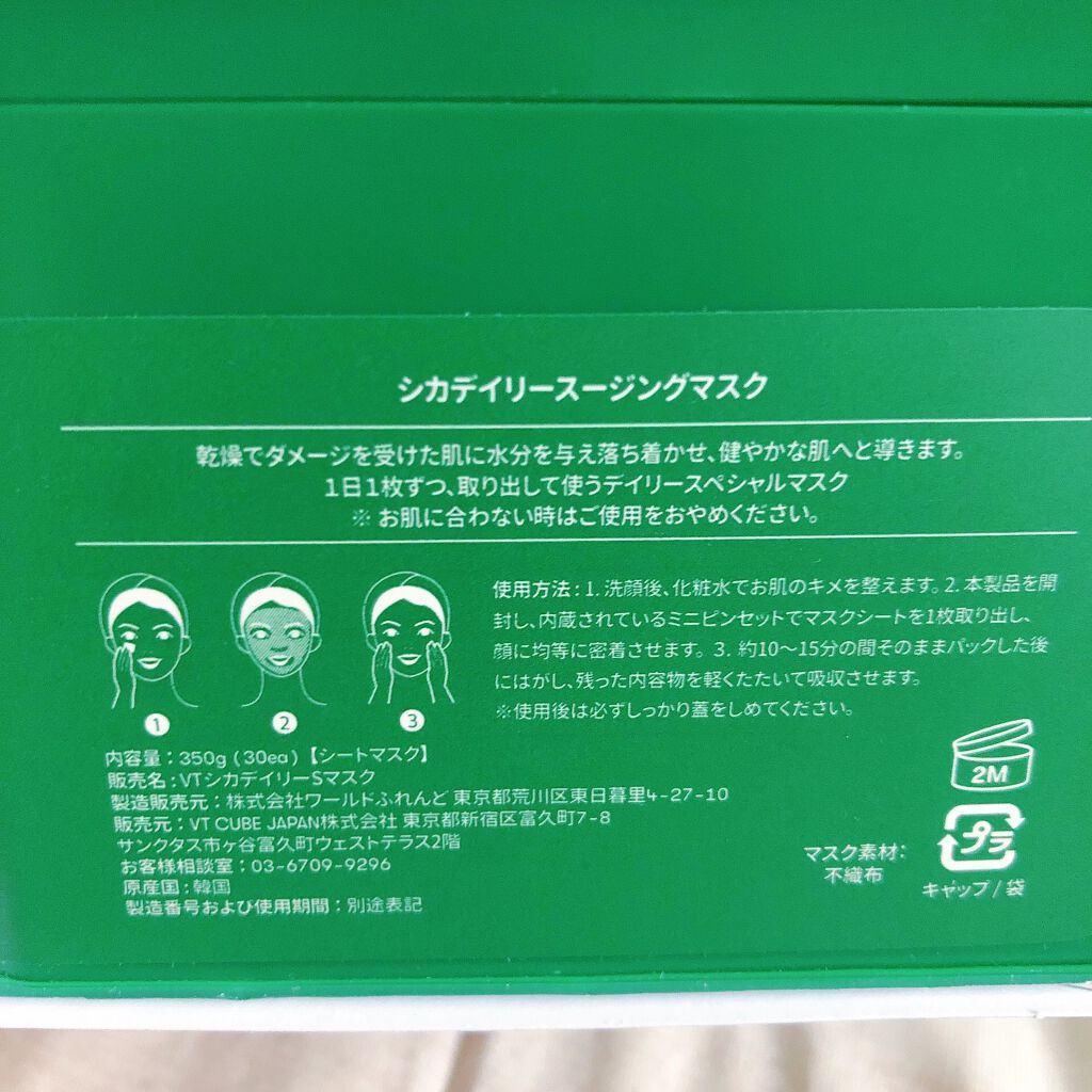 - 1日10分貼っておくだけ!乾いたゆらぎ肌に クイック整肌&水分ケア!1日に1枚ずつ! デイリーケアにぴったりな30枚入りの大容量シートマスク ■TIP メイク前の10分、時短メンテナンスケア。 肌をなめらかにして、化粧ノリが良くなります。 忙しいときはながらケアとしておすすめ! ■使用方法 洗顔後、化粧水で肌を整えた後、 蓋を開けてミニピンセットで1枚取り出します。 シートマスクを顔に均等に密着させ10分後にはがし、 残りの美容液はてのひら全体で優しくなじませます。