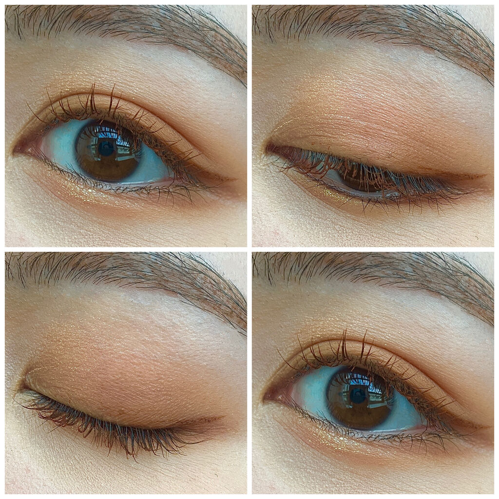 このメイクのポイントは、塗り方にあります✨ 色をがっつり分けて塗るのが、意外と盛れちゃうのです♡ 小豆色を忍ばせて、京都気分を味わいましょ🍁 1.左上の透けツヤ色で目を囲む 2.右上のピンクを二重幅にのせる 範囲は目頭から半分の位置 ❗️ぼかしたりせずそのままの発色で 3.左下くすみピンクを二重幅にのせる 範囲は②で塗らなかった部分 ❗️このときもぼかさない 4.ブラウンをうすーく目のキワにライン状にのせる ②と③のときに色を混ぜないのがポイント💕