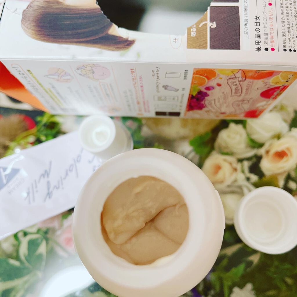 - [医薬部外品] ●髪に密着!トリートメント(※2)感覚で手で簡単に塗布できる、こっくり乳液 こっくり乳液なのでタレ落ちず、手で簡単に塗ることができます。 髪にしっかり密着するからムラなく染まります。 (※2 ヘアトリートメントではありません。) ●髪にやさしいトリートメント成分配合&髪をいたわるヘアトリートメントセラム付き ●内容量1.5倍(※1)たっぷり使ってしっかり染まる ムラなくきれいに染める秘訣はヘアカラーの“使用量”でした! たっぷりの内容量で染めるから「ムラ染まり」になりにくく、きれいに染まります。 (※1 メーカー従来ヘアカラー乳液タイプ比) ●女の子をトリコにするオリジナルカラー名 世界観を演出するため、パッケージの雰囲気とリンクさせたオリジナルカラー名にもご注目! 気分の上がるかわいいネーミングです。 ●牛乳パック型のパッケージ、購入者の共感を呼ぶデザイン 視認性を高め、乳液タイプのヘアカラー剤を連想できる、牛乳パック型のパッケージ。 女の子たちに支持されるナチュラルさ、透明感のあるデザインです。