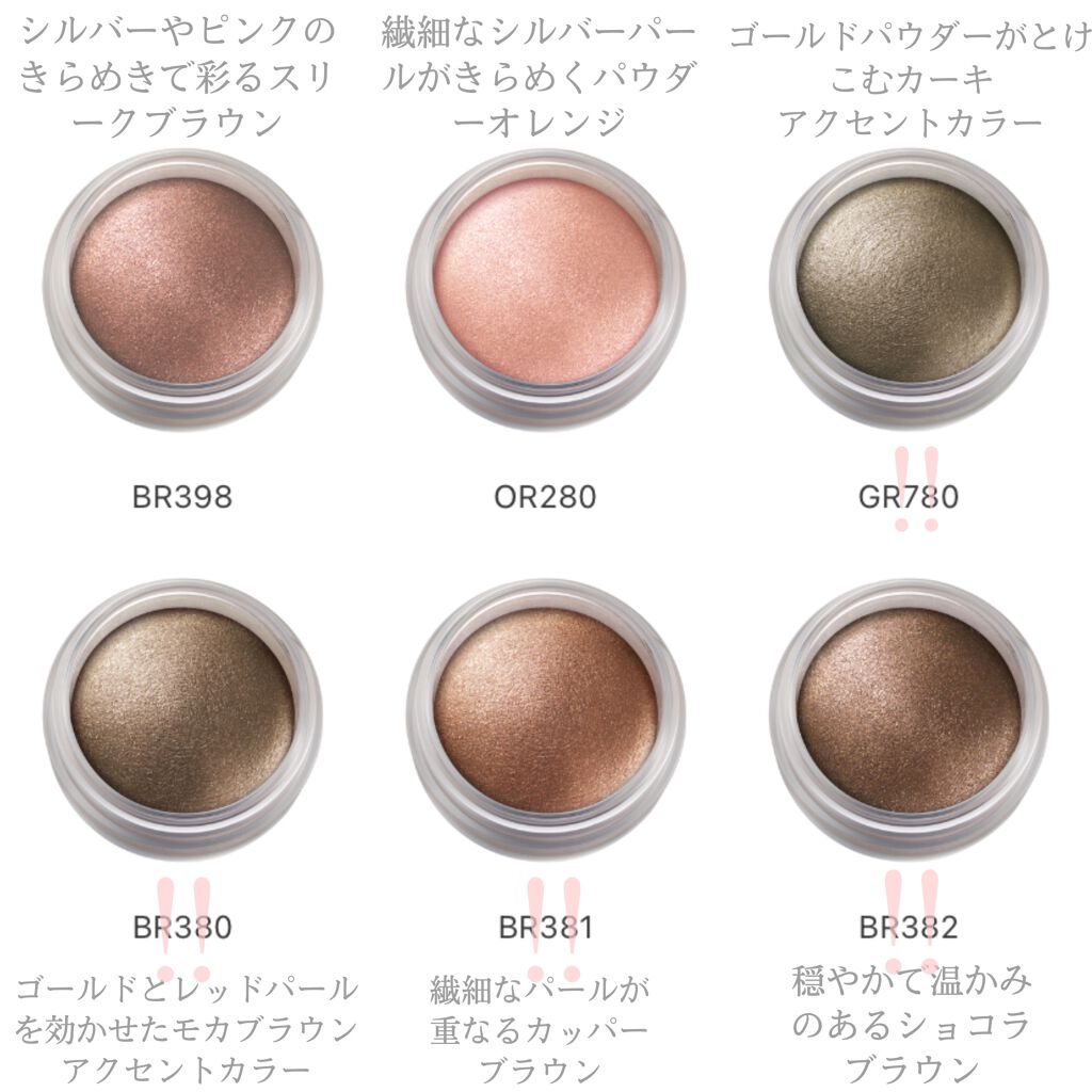 ツヤが抑えられキメの整いを演出する"マットシャドウ"と、上品にきらめく"シマーシャドウ"、しっとりとした質感で、つけた発色が持続する"グリッターシャドウ"の9色のシャドウパレットです。 デイリー使いにおすすめの、ブラウンベースやパステルカラーのパレットを全5種類ラインアップ。
