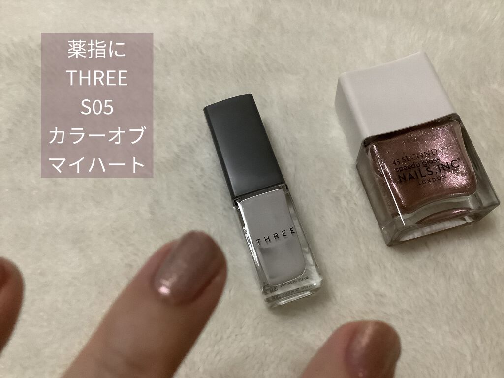 ずっと心に引っかかっていたTHREEネイルポリッシュ125. いざ塗ってみるとやっぱり茶色な気がします.小豆色っぽくもあります. 細かいキラキラな砂が滲み出てるような色合いが可愛いので購入して良かったです. このネイル一個しか購入していないのに試供品がいっぱい入っていました. この間購入したベースコートが良かったです.サロンでの前準備のようなマットでスムースな爪にしてくれます. 爪もフラットにしてくれるしめっちゃ乾きも早いし乾いたら目視でわかる所も使いやすさをupです.