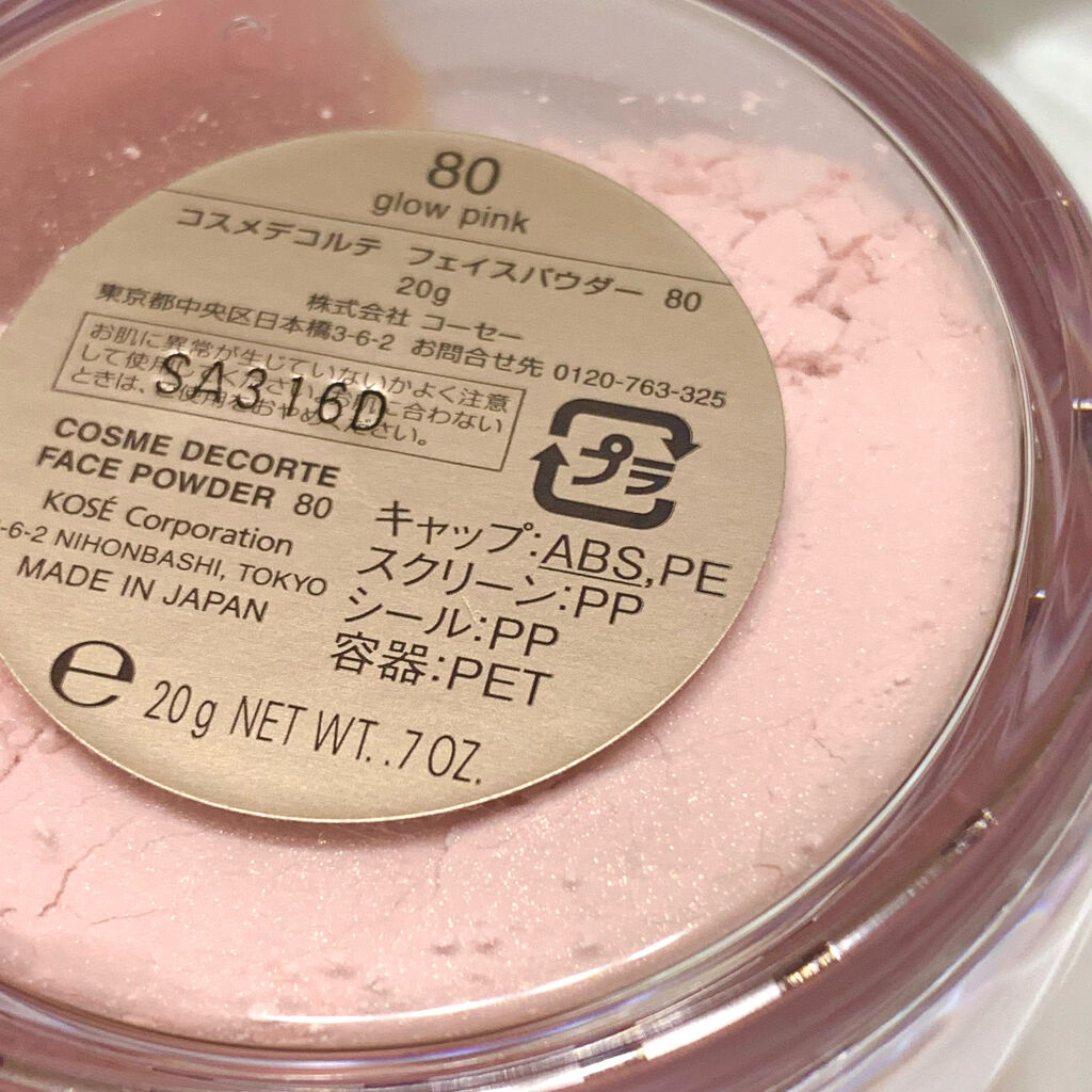コスメデコルテフェイスパウダー#80奮発して、80glowpink を買ったよ。色味はピンク(パール有り)血色感をプラスしてくれるので肌を明るく見せてくれるパール入りなのでお肌をナチュラルにキラキラにしてくれる♡粉も柔らかくて粒子も細かく絶妙...