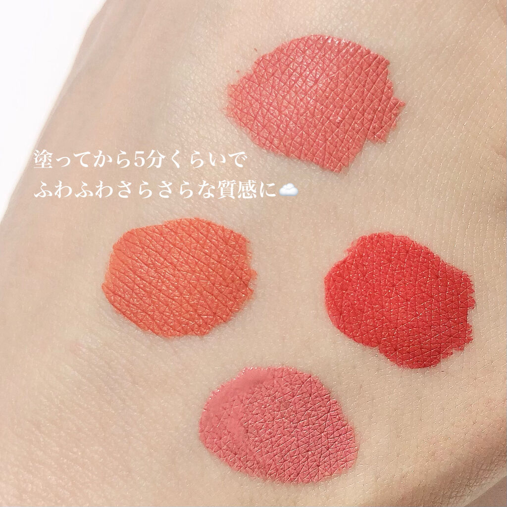 - マットな発色で色もちつづく、 ふんわりルージュ。 point. マスクにつきにくく、色もちつづく マットなのに負担感が少なく、乾きにくい つけ心地ふんわり””シフォンマット”な質感