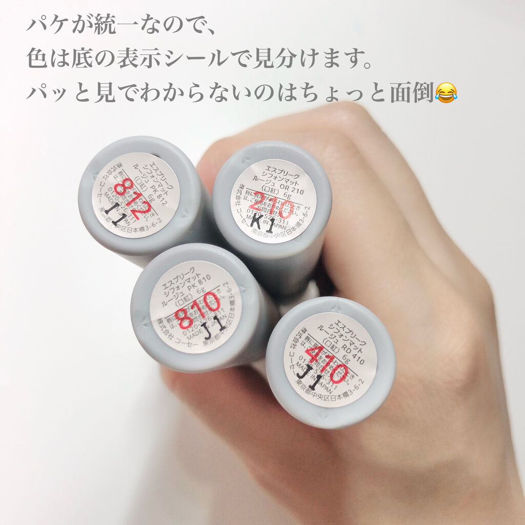 エスプリークシフォンマットルージュBE310イエベ向けのベージュ系結構前からあるような?数年前にも使った記憶ある。つけたての色が落ちにくい、ふんわりマット仕上げの美発色リキッドルージュ。マットルージュだけどスルスルなめらかにふわっと塗...