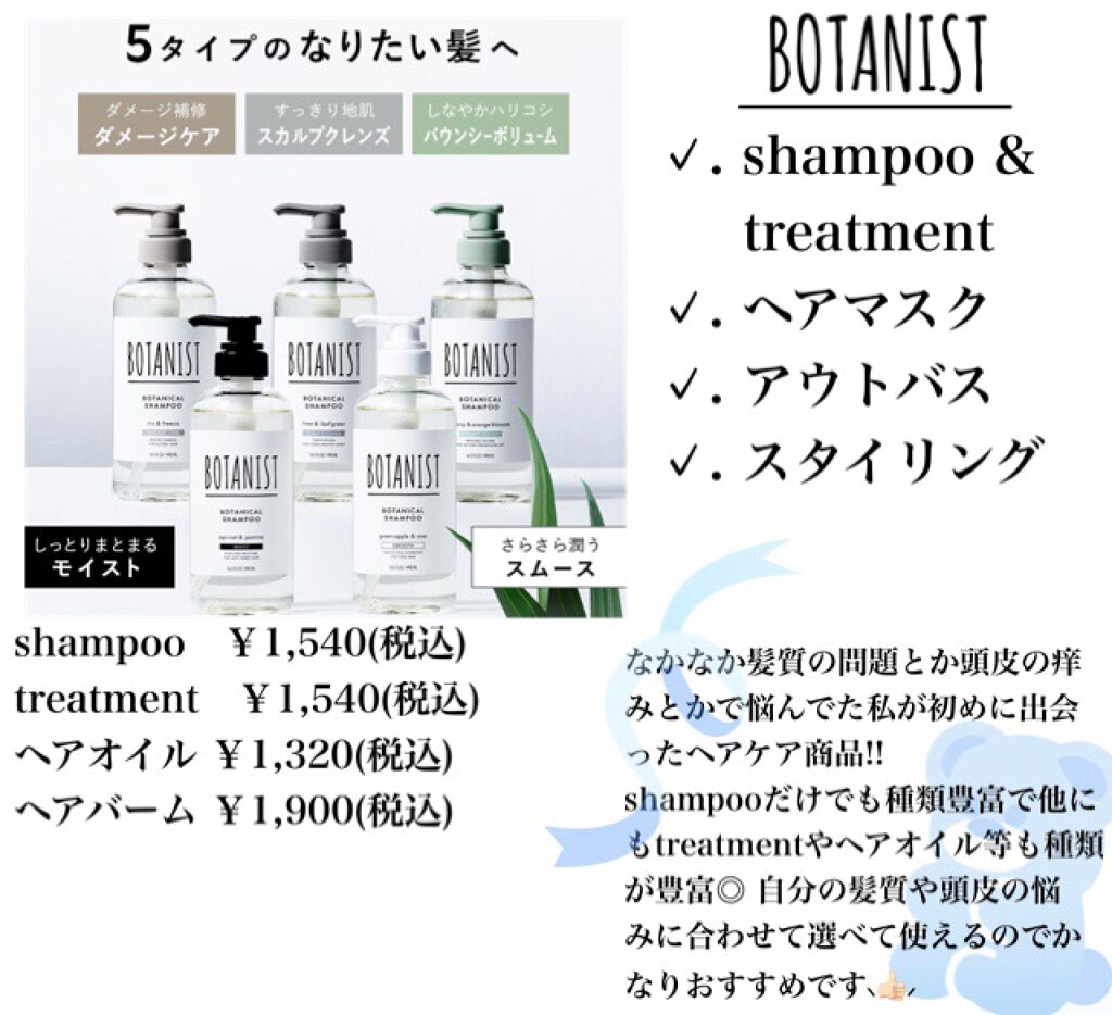 BOTANIST ボタニカルシャンプー/トリートメント(モイスト) | 1,540円 |