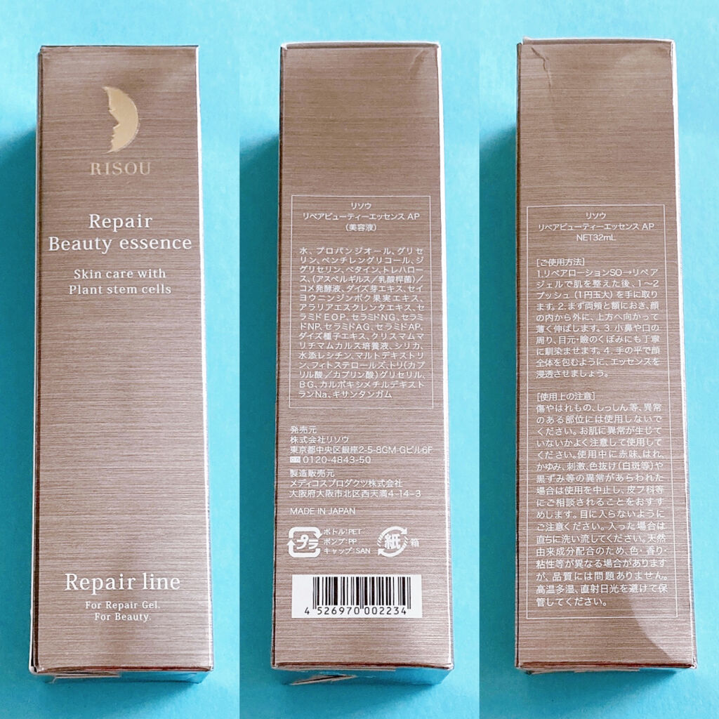 リソウコーポレーション様のリペアビューティーエッセンスAPをお試しさせていただきました。金色の高級感のあるデザイン。プッシュするとさっと手に取り、使えることが出来て便利です。しっとりとリッチなテクスチャーの美容液です。なめらかに伸び広がり、す...